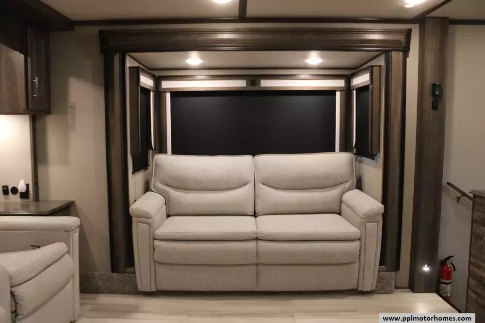 Specs: Length: 37.92 ft., Width: 8.42 ft., Height: 13.42 ft., Total Fresh Water Tank Capacity: 93 gal., Total Gray Water Tank Capacity: 100 gal., Total Black Water Tank Capacity: 50 gal., Number of Propane Tanks: 2, Total Propane Tank Capacity: 60 lbs.