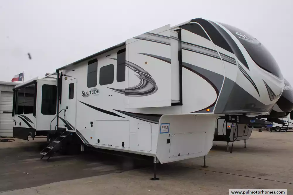 This 2021 Grand Design Solitude 373FB Is Perfect For Any Adventure, Whether You Are Needing To Get Away For A Little Bit Or Needing A Place To Stay For A While! Highlights Include..... A Brand-New Roof Membrane, A 6-Point One-Touch Hydraulic Leveling System, 4 Slide-Outs, MORryde CRE3000 Suspension System, MORryde Rear Mount Storage Rack, MOrryde "Step Above" Entry Steps, Enclosed Underbelly, Frameless Tinted Windows, 2 Roof-Ducted Air Conditioners, 110v Residential Samsung Refrigerator, In-Fridge Ice Maker, Dual Power Awnings, Washer/Dryer, Heated Tanks, Outside Speakers, Winegard 2 TVs, Outside Shower, Fireplace, Central Vacuum System, Kitchen Island, Convection Microwave, 4 Burner Range, Oven, Flip-Top Dresser Storage In Bedroom, Lippert One Control (Smart Device App Control), T.P.M.S., Propane Tanks With Sensors (Can Use Smart App To Monitor), MORryde "Easy Reel" Power Cored Reel, Master King Bed With Bed-Side Plugs And USB, And More! This Grand Design Front-Bath Model Has All You Need To Enjoy Your Stay! The Only Thing It Needs Is New Adventures! This Solitude Is Eligible For PP"s Financing Options As Well As Protection!