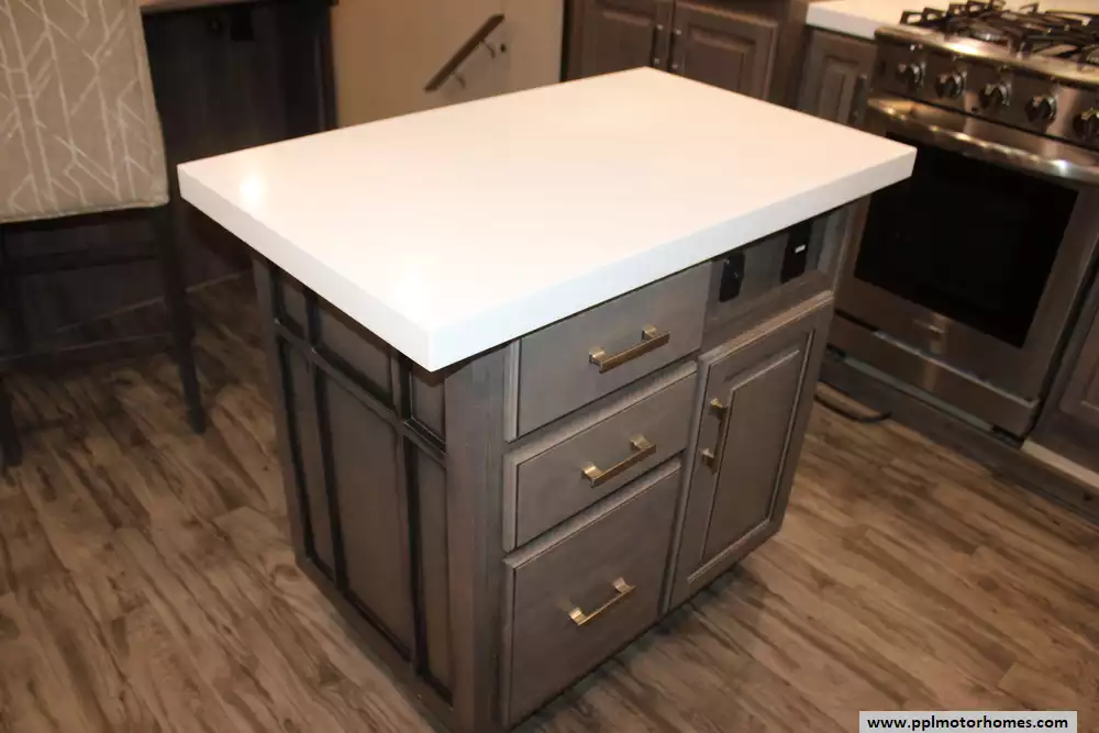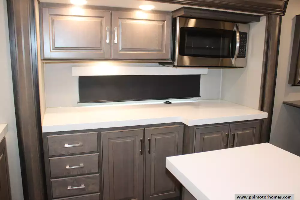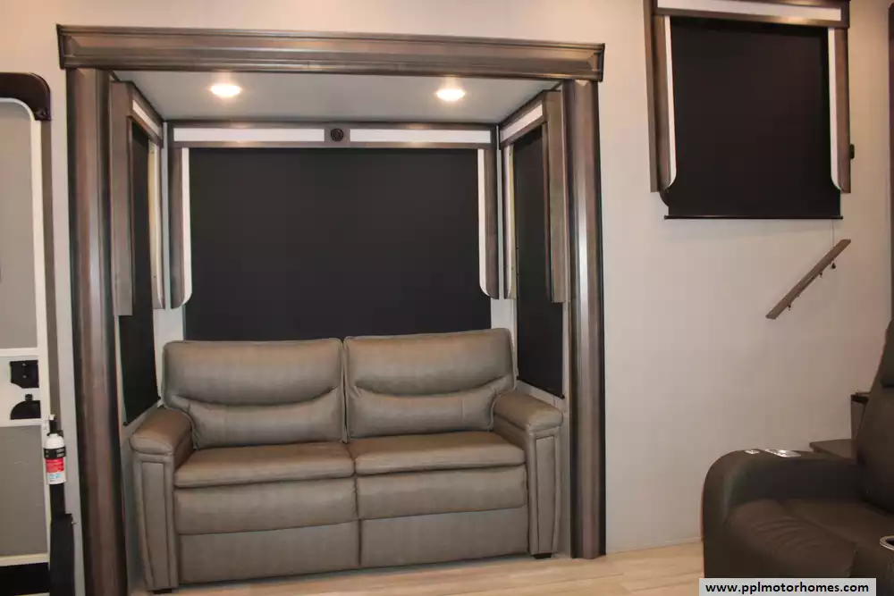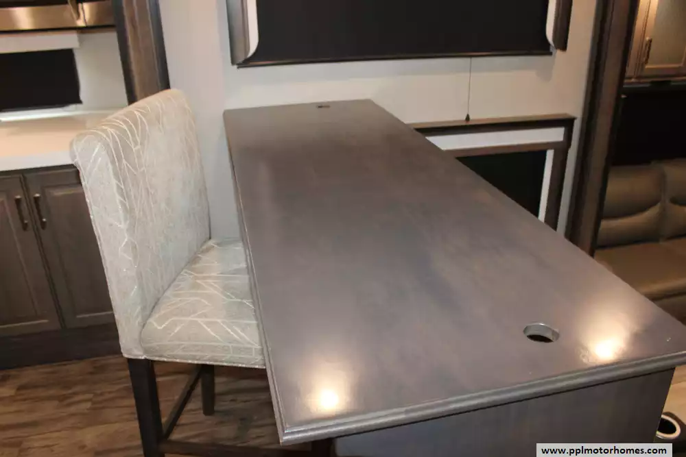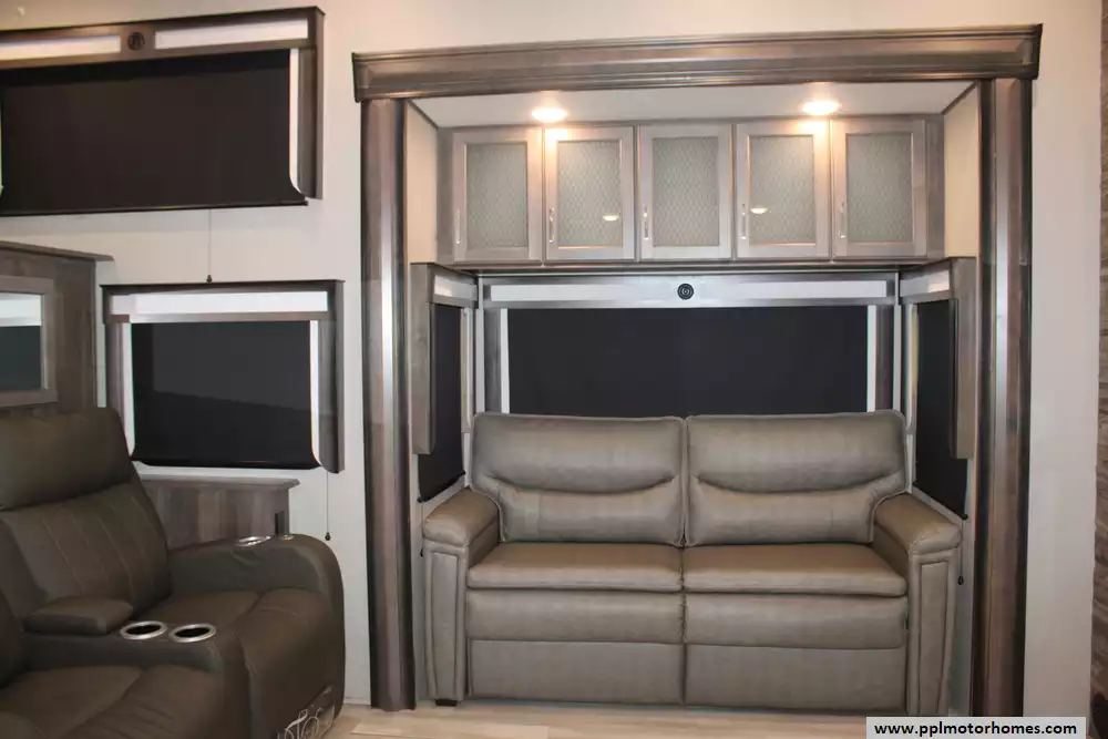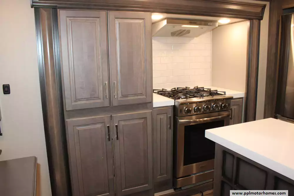 Experience the pinnacle of luxury living on the road with this 2021 Grand Design Solitude 390RK. As one of the most respected names in the industry, the Solitude line is celebrated for its residential-grade construction and sophisticated design, making it a premier choice for extended-stay travelers. This 41-foot fifth wheel features a unique rear-kitchen layout that maximizes workspace and storage, offering a chef-inspired environment complete with a four-burner range, oven, microwave, and a massive 110v residential Samsung refrigerator with an in-fridge ice maker. The five spacious slide-outs create an expansive interior that feels more like a custom home than an RV, highlighted by a cozy fireplace and a large TV for ultimate relaxation.