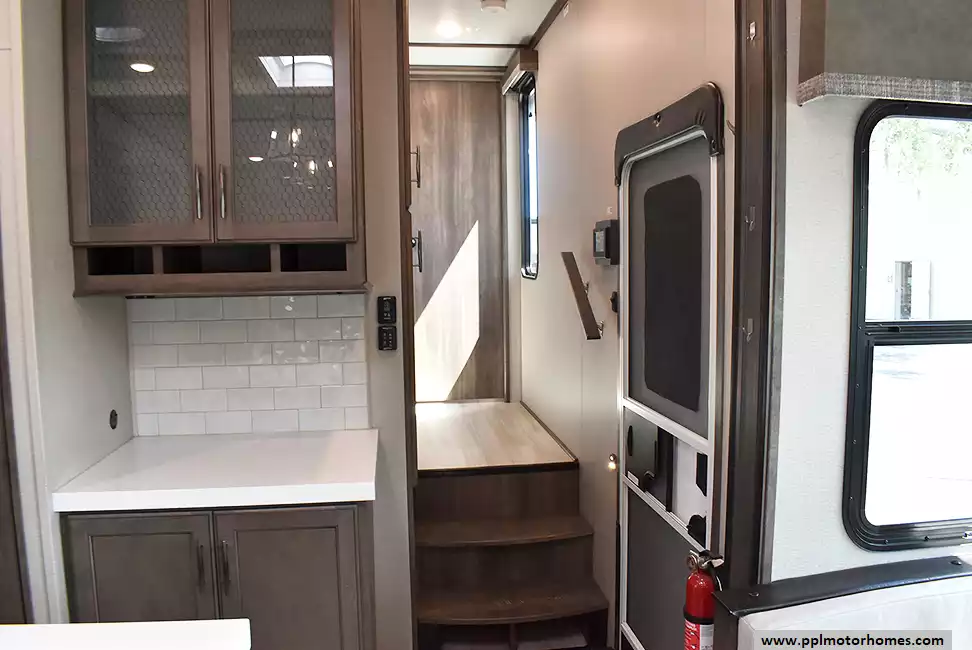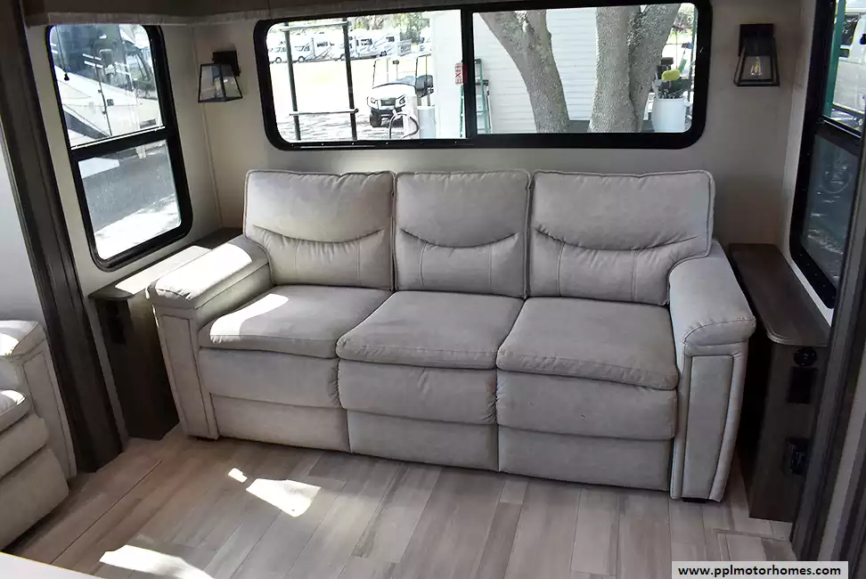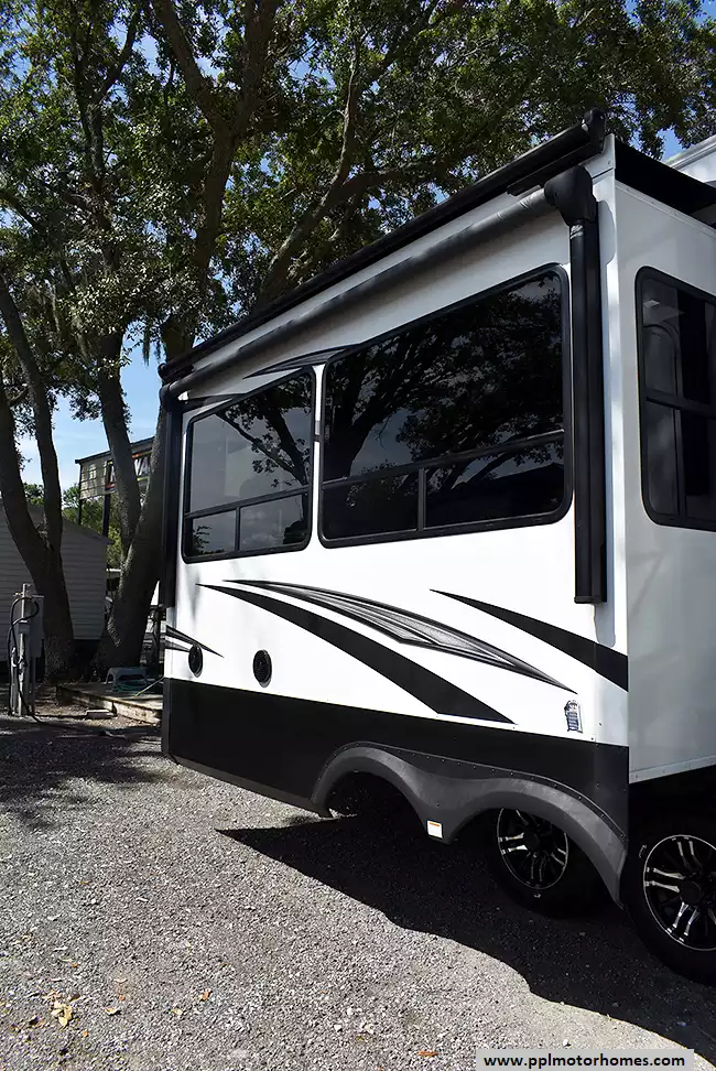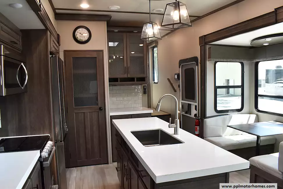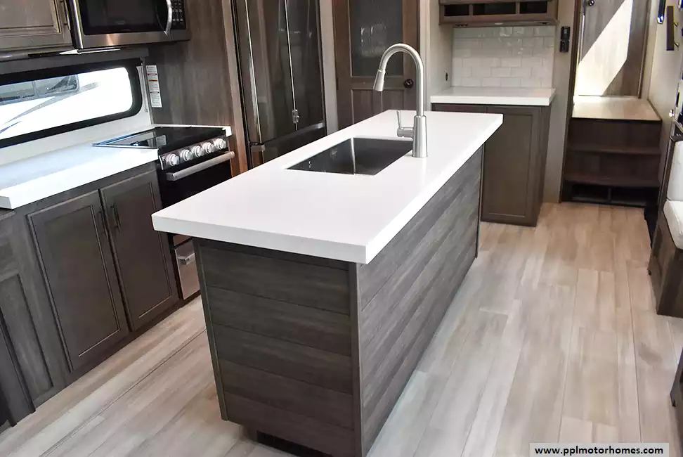 This 2021 Solitude S Class 2930RL has an Electric Landing Gear, 3 Slide-outs, 2 Ducted Air Conditioners, Residential Samsung Refrigerator, In-Fridge Ice Maker, Automatic Main Awning And Window/Slide Awnings, Heated Tanks, Outside Speakers, 2 TVs, Outside Shower, Fireplace, Convection Microwave, 3 Burner Range, Oven