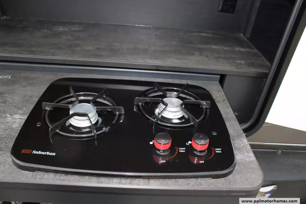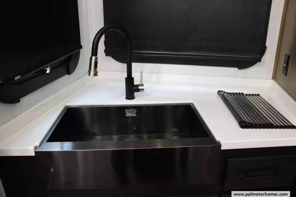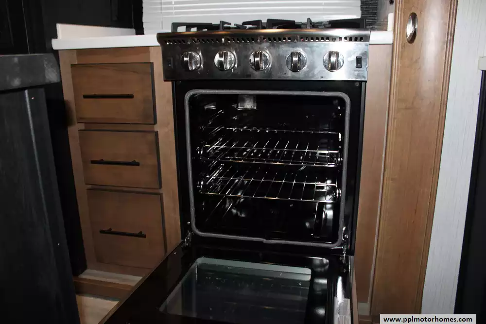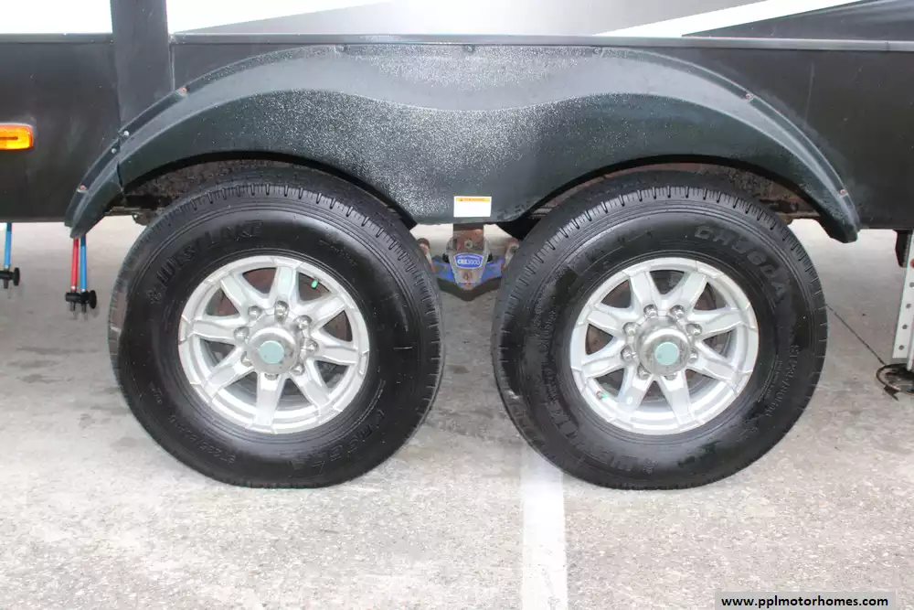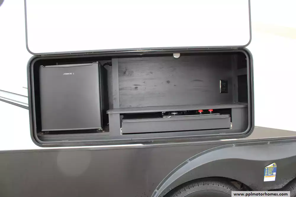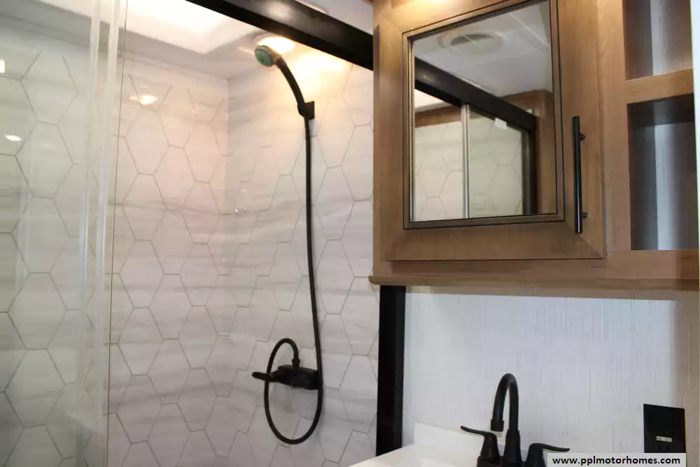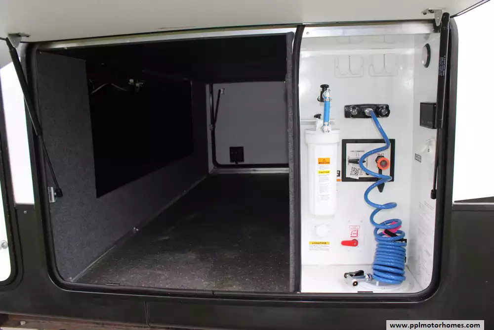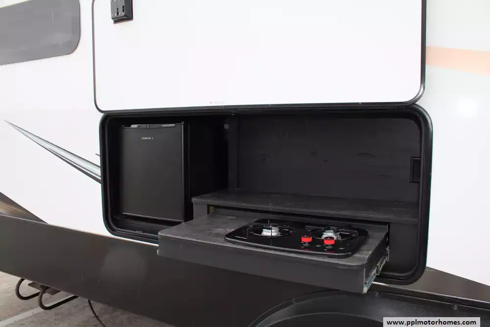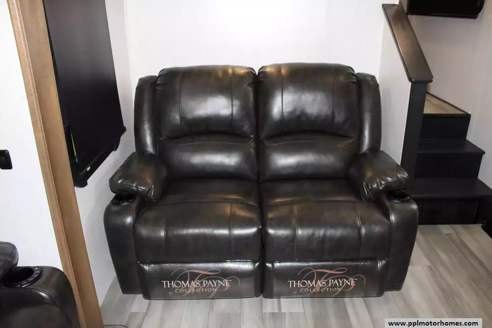 Specs: Length: 37.5 ft., Width: 8 ft., Height: 13.25 ft., Interior Height: 6.33 ft., Payload Capacity: 4,480 lbs., Total Fresh Water Tank Capacity: 80 gal.,Total Gray Water Tank Capacity: 90 gal., Total Black Water Tank Capacity: 45 gal., Total Number of Propane Tanks: 2, Total Propane Tank Capacity: 60 lbs.