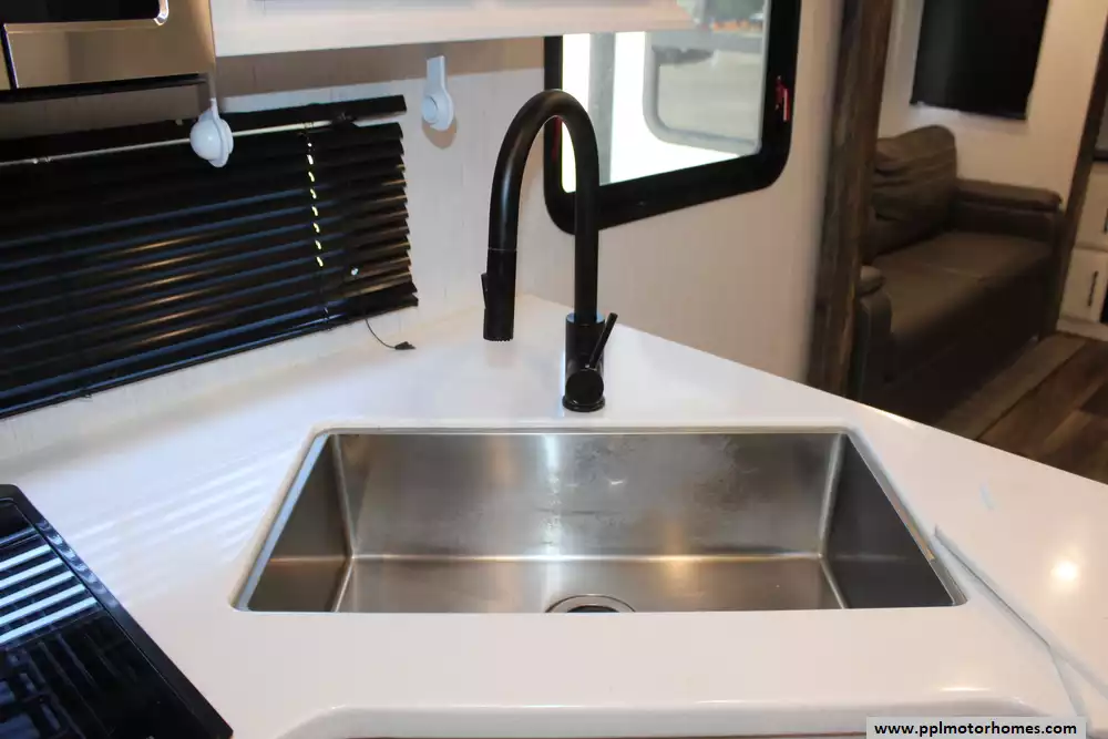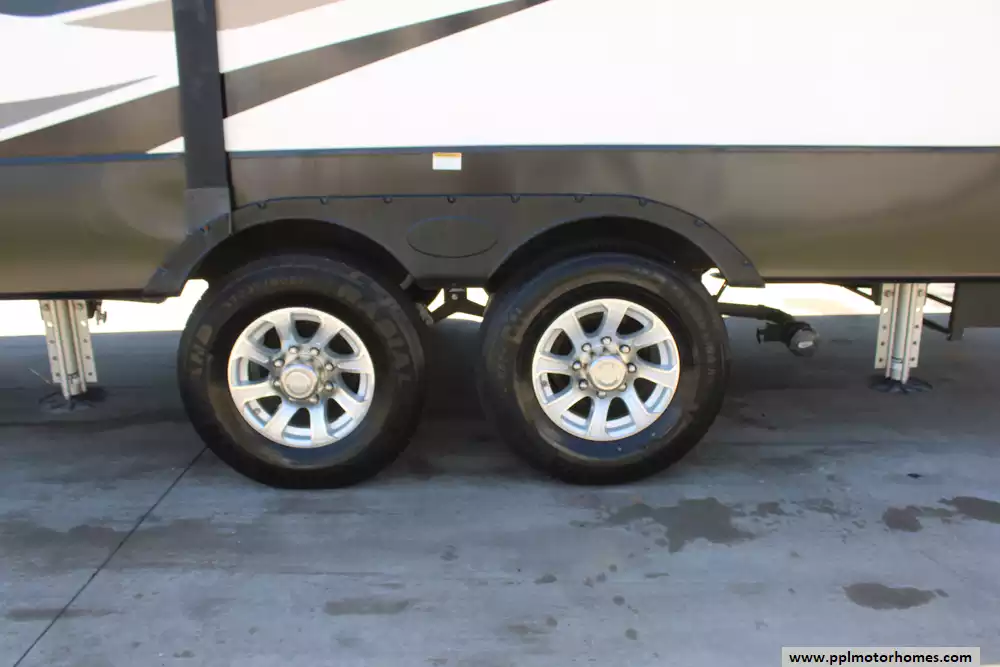 Specs: Length: 37.5 ft., Height: 13.33 ft., Width: 8.08 ft., Payload Capacity: 4,542 gal., Total Fresh Water Tank Capacity: 65 gal., Total Grey Tank Capacity: 90 gal., Total Black Water Tank Capacity: 45 gal.