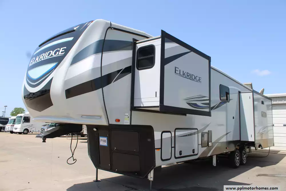 This 2021 Heartland Elkridge 37BAR Is Made For Adventures!! Some Highlights Include... A 6-Point One-Touch Hydraulic Leveling System, 3 Slide-Outs, 2 Roof Ducted Air Conditioners, Azdel Composite Panels, Rear Accessory Hitch, Rear Camera Prep, Side-Mounted Solar Prep, Tinted Windows, MORryde "Step Above" Entry Steps, Inverter, 4 Door 110v Residential Refrigerator, Wine Cooler, Automatic Main Awning, Washer/Dryer, Outside Speakers, Thomas Payne Electric Reclining Theater Seating (With Heat/Massage/Light-Up Cupholders), 3 TVs, DVD Player, USB Ports (Including Bed-Side), Lippert One Control, Outside Shower, Fireplace, Kitchen Island, Designer Backsplash, Microwave, 3 Burner Range, Oven, Master Queen Bed, And More! This RV Has A Brand-New Roof, As Well! Get Ready For The Memories To Begin! Ask About PPL's Financing Options. This 2021 Elkridge Is Eligible For Protection!