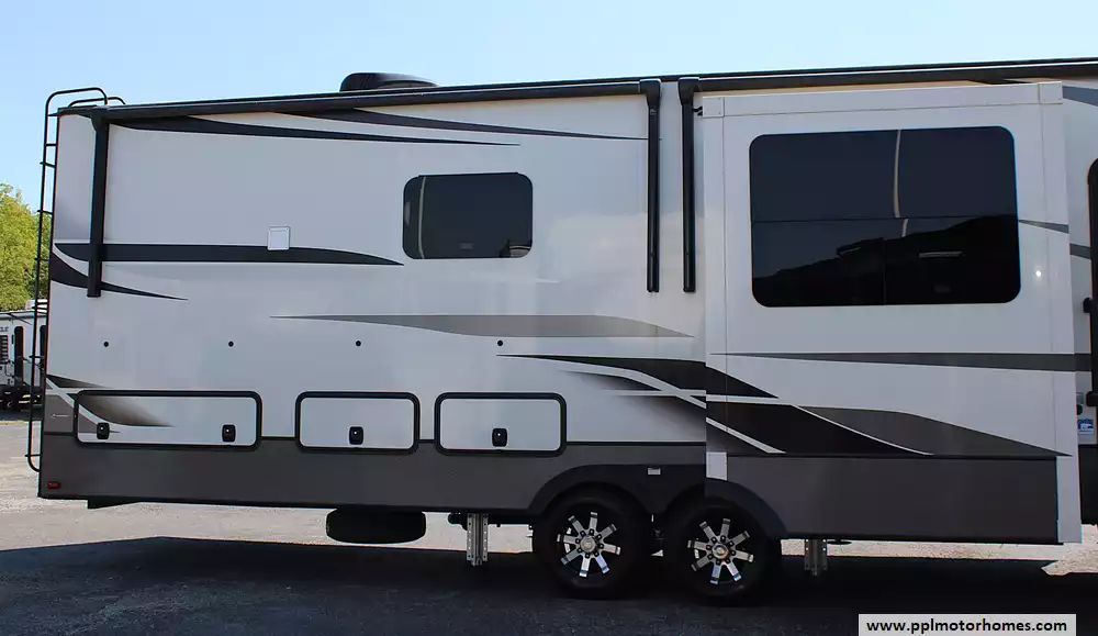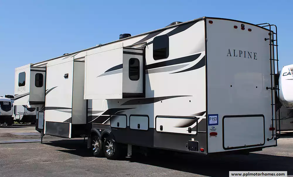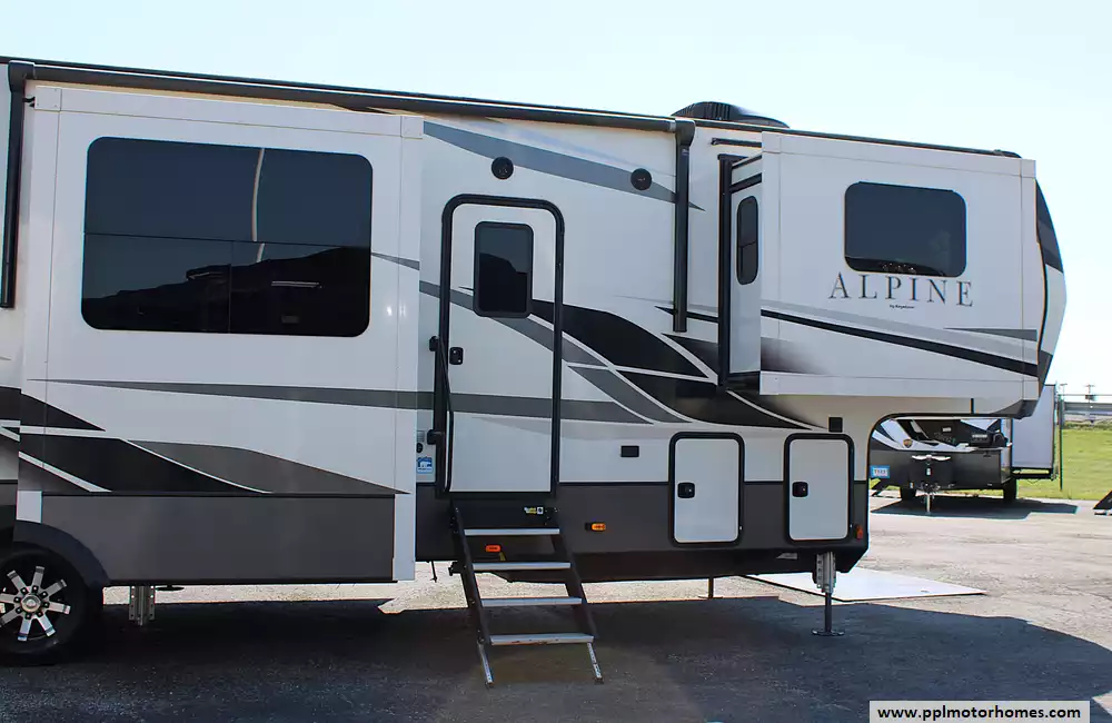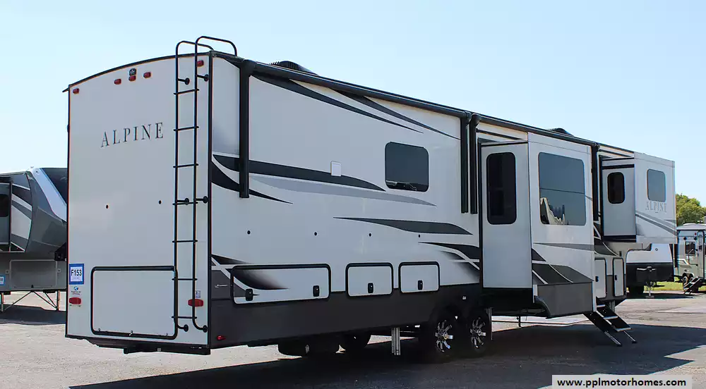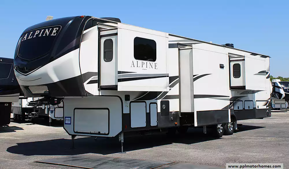 Despite its size and amenities, the Alpine 3700FL is engineered for confident towing. Built on a strong, road-ready chassis with a hitch weight of just under 2,800 lbs and a GVWR of 16,500 lbs, it can be pulled smoothly by a properly equipped heavy-duty truck designed for fifth-wheel towing. Hydraulic auto-leveling makes setup a breeze, while large pass-through storage ensures all your adventure gear has a place. For those who want to explore in style without sacrificing comfort, this Keystone Alpine offers the perfect combination of sophistication, strength, and indulgence on the open road.