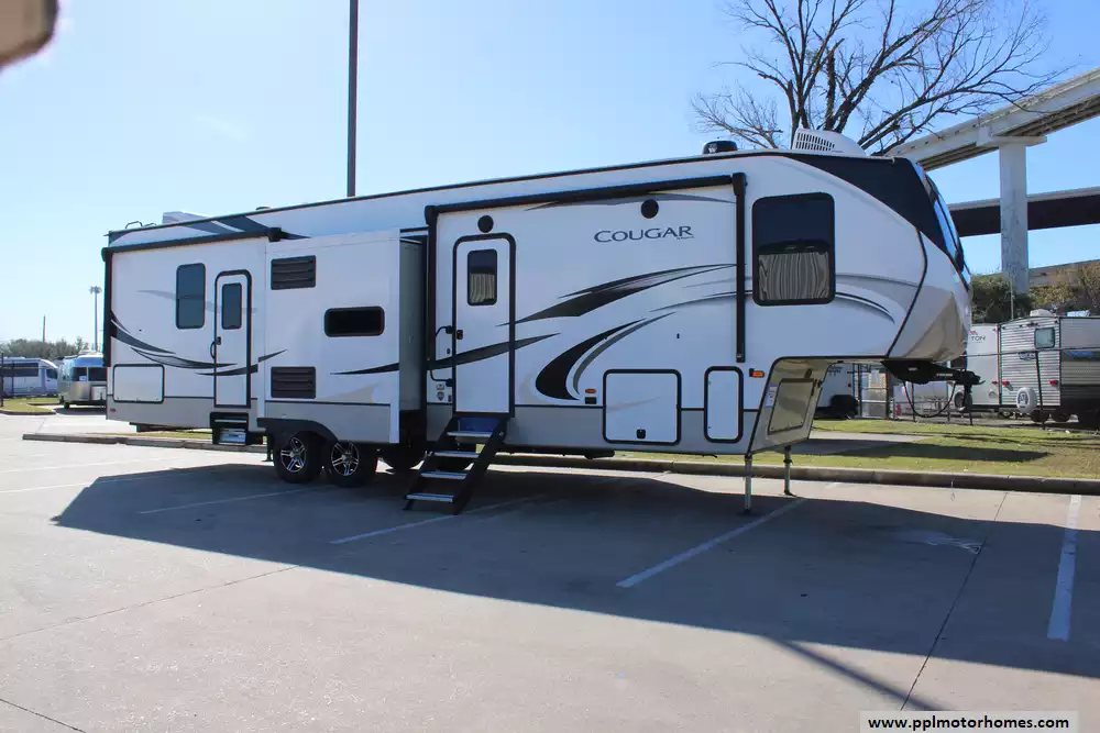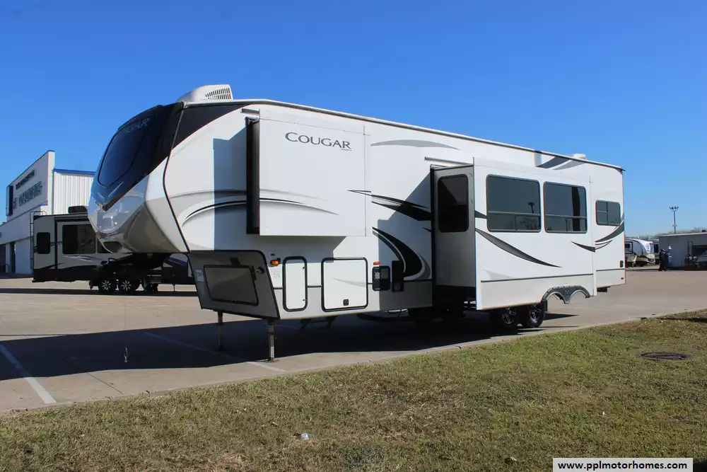 This 2021 Cougar by Keystone 364BHL blends comfort, storage, and practical design making it well-suited for families, multi-generational trips, and extended camping seasons. Features Include...Electric Landing Gear, 3 Slide-outs, 2 Ducted Air Conditioners, 4 Door Gas/110v Norcold Refrigerator, Automatic Main Awning, Outside Speakers, TV, Outside Shower, Fireplace, Microwave, 3 Burner Range, and Oven.