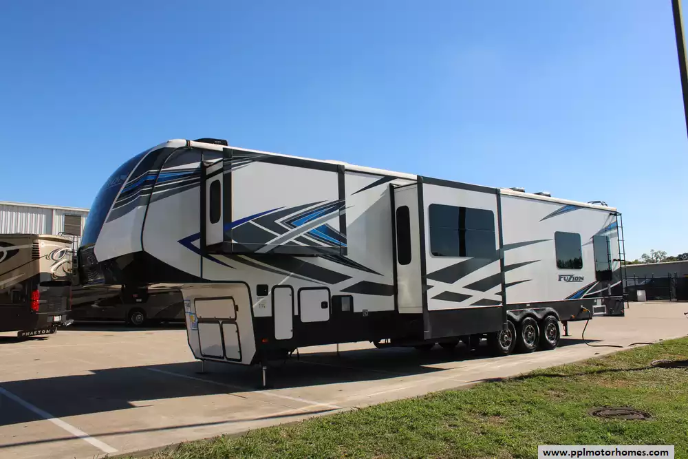 Wherever You Might Be Parked For the Night,You'll Find This 2021 Fuzion 430 to Truly Be Your Home On the Road.Amenities Include...Has a Hydraulic Landing Gear, 3 Slide-outs, Onan Gas Generator, 3 Ducted Air Conditioners, 4 Door Norcold Refrigerator, Automatic Main Awning, Washer/Dryer Connections, Outside Speakers, 3 TVs, Outside Shower, Fireplace,Central Vacuum,Omni Shield Weather Package,Fuel Station, Floating Patio, Convection Microwave, 3 Burner Range,and Oven.Provides More Comfort and Conveniences to Make Your Vacation Exactly How You Want It!