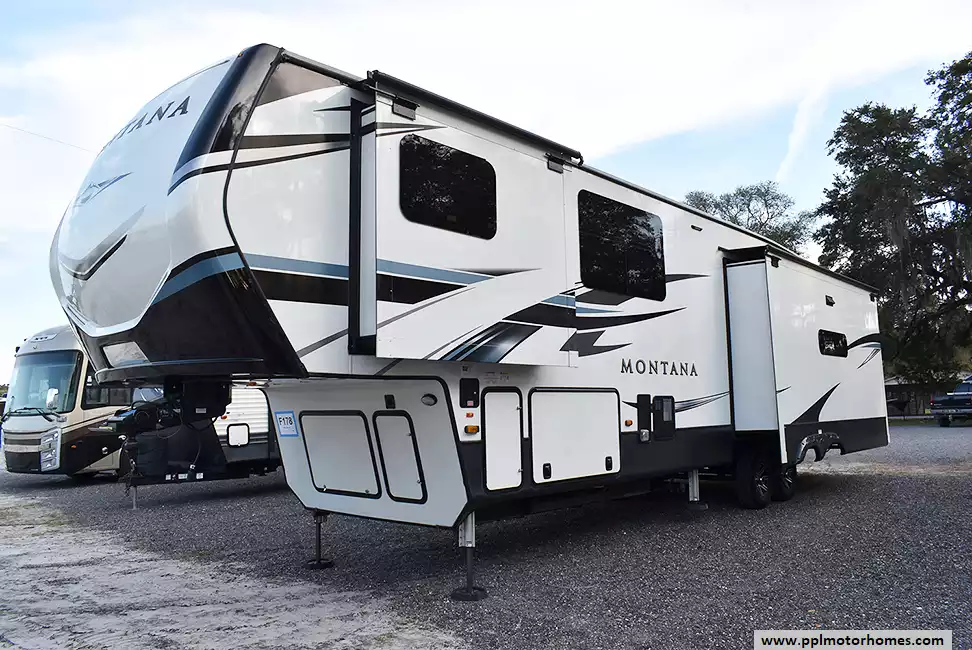 This 2021 Keystone Montana 3781RL is a fifth-wheel RV that defines luxury and sophistication. With its innovative design and construction, it offers a spacious and elegant living space. The floor plan incorporates multiple slide-outs, creating a roomy interior with a residential feel. The gourmet kitchen features high-end appliances, and the living area boasts comfortable furnishings and a fireplace. The master bedroom provides a serene retreat with a king-sized bed, and the bathroom is equipped with modern fixtures. Packed with high-end amenities, this Montana model ensures a lavish and enjoyable RV lifestyle, making it an ideal choice for those seeking unparalleled comfort on the road.
