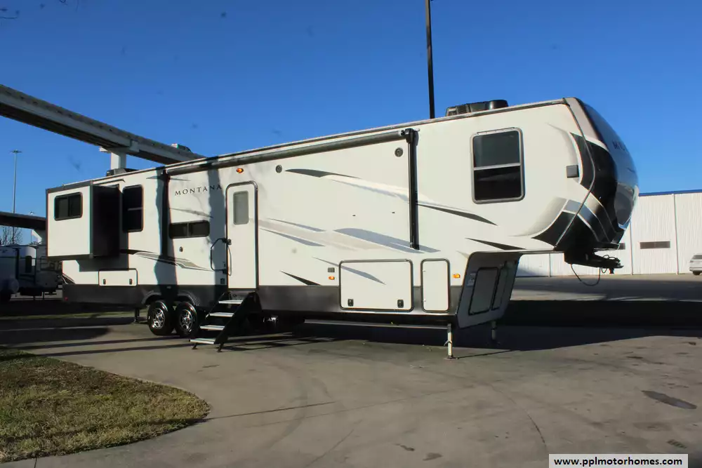 This 2021 Montana High Country 373RD is especially popular with families or couples who want residential-style living in a towable package. Amenities Include...Electric Landing Gear, 4 Slide-outs, 2 Ducted Air Conditioners, 110v Residential Ge Refrigerator, Automatic Main Awning, Washer/Dryer, Outside Speakers, TV, Outside Shower, Fireplace, Microwave, 3 Burner Range, and Oven.