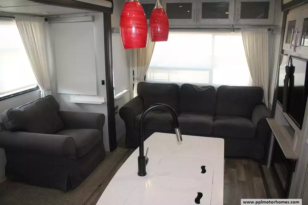 While there are some minor cosmetic blemishes, this coach has been well cared for and priced accordingly. It's a rare opportunity to own a feature-packed luxury fifth wheel with a flexible layout, high-end construction, and family-friendly design. Whether you're hitting the road full time or seeking the perfect getaway retreat, the 385BR delivers exceptional value and comfort.
