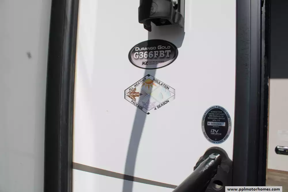 This 2021 K-Z Durango Gold 366FBT Makes For A Great Getaway! Highlights Inlcude... A 6-Point One-Touch Hydraulic Leveling System, 3 Slide-Outs, Frameless Tinted Windows, 3 Roof-Ducted Air Conditioners, Lippert "Solid Step" Entry Steps, Pet Leash Latch, "All Weather Package", 4 Door Gas/110v Norcold Refrigerator, Automatic Main Awning, Washer/Dryer, Solar Panel, Dishwasher, Outside Entertainment System, 3 TVs, Outside Shower, Living Room Fireplace, Bedroom Fireplace, Central Vacuum System, Prep For King Wifi, Kitchen Island, Convection Microwave, 3 Burner Range, Oven, And More! Let The Memories Begin In This Durango Gold! Ask About PPL's Financing Options And How This RV Is Eligible For Extended Protection.