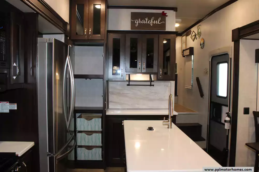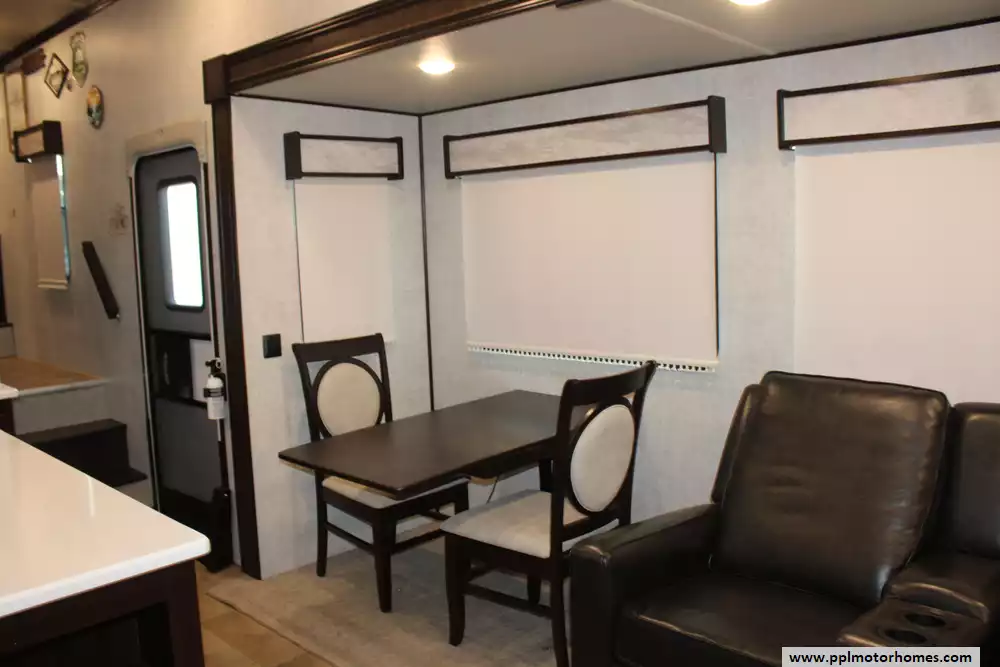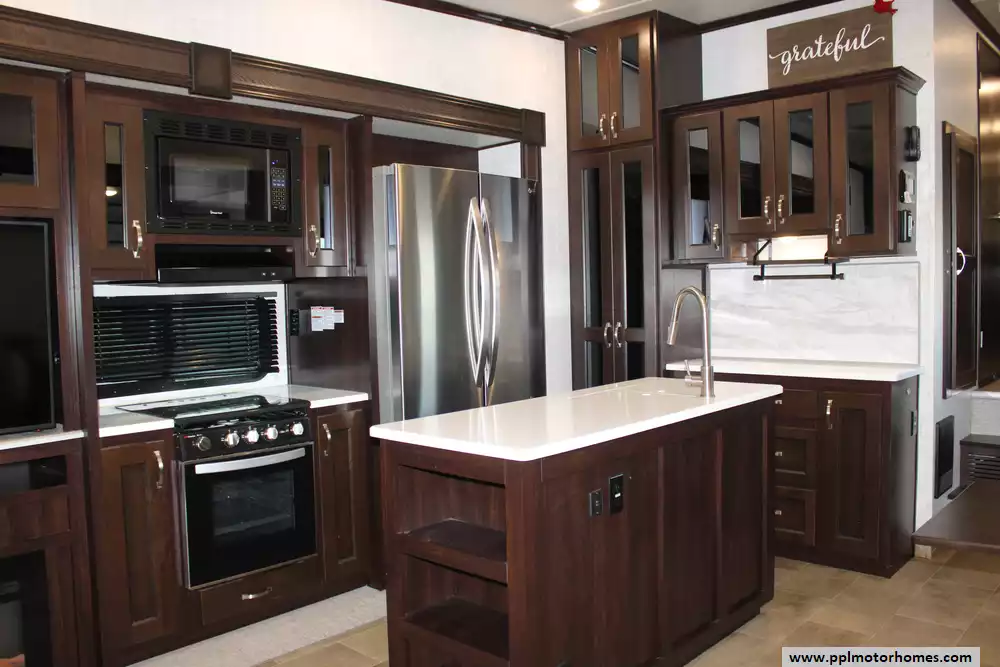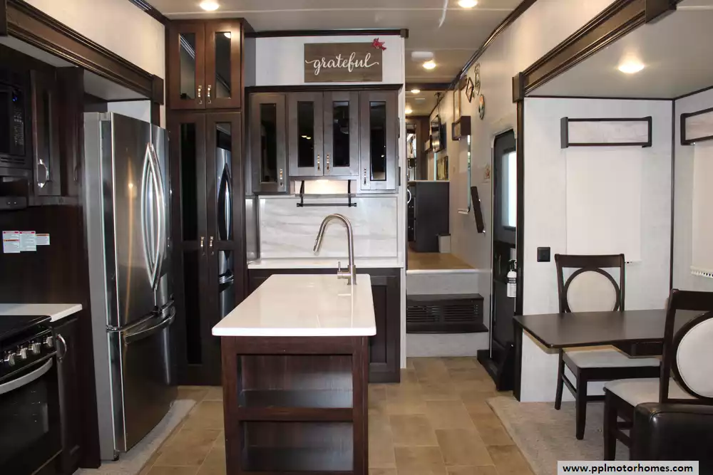 This 2021 Columbus Compass 329DVC is built for people who want something luxurious and comfortable in a fifth-wheel, with lots of residential touches, multiple slide-outs, and good amenities. Features Include...3 Slide-outs, 2 Ducted Air Conditioners, Double Door Residential Lg Refrigerator, In-Fridge Ice Maker, Automatic Main Awning And Window Awning, Washer/Dryer Connections, Outside Speakers, 2 TVs, Outside Shower, Fireplace, Microwave, 3 Burner Range, and Oven.