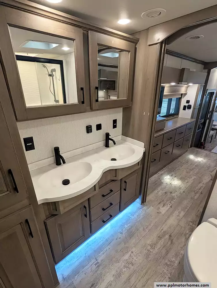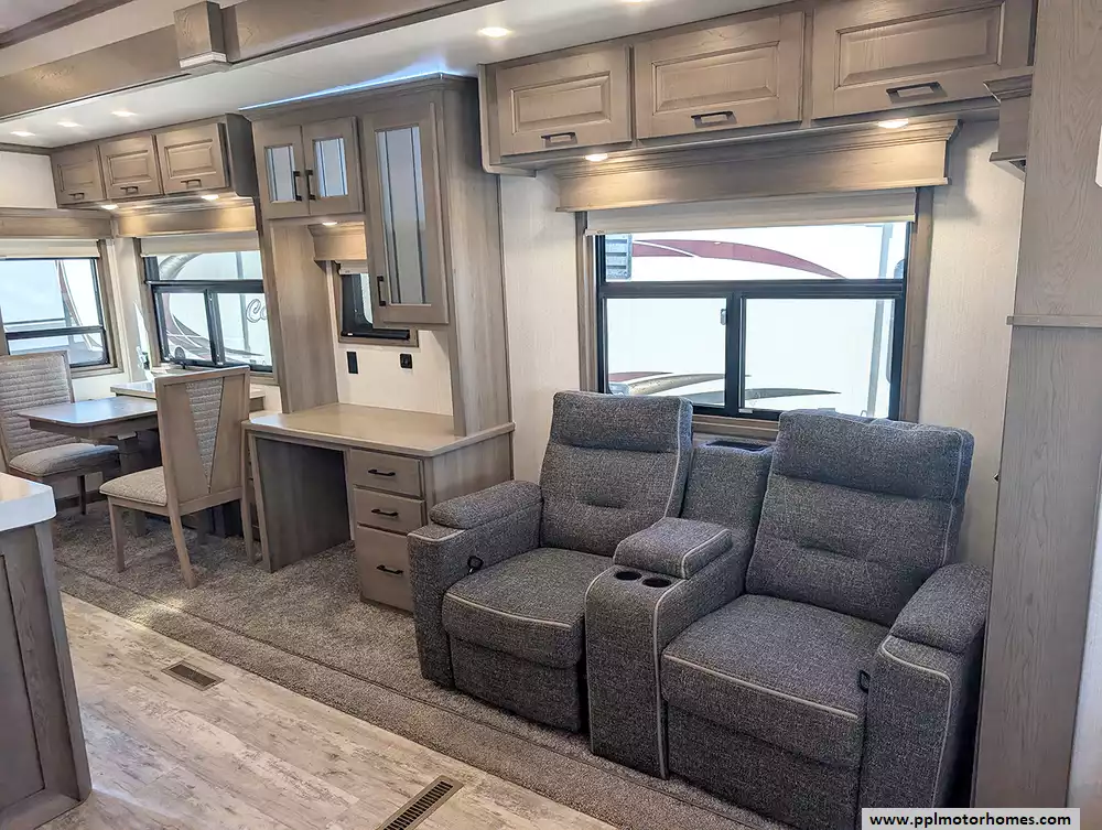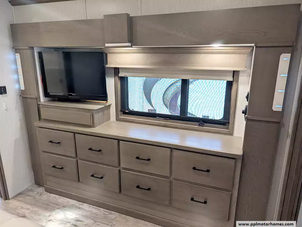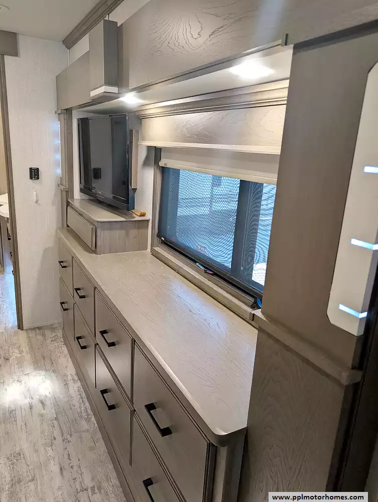 (Floor plan is NOT drawn to scale. Length of vehicle is approximate. Buyer is responsible for verifying actual length. PPL Motor Homes compiled this list of features, specifications, equipment and options as a guide. No representation or warranties, either express or implied, are made as to the accuracy of the information herein. Please verify for yourself all items listed before purchase.)