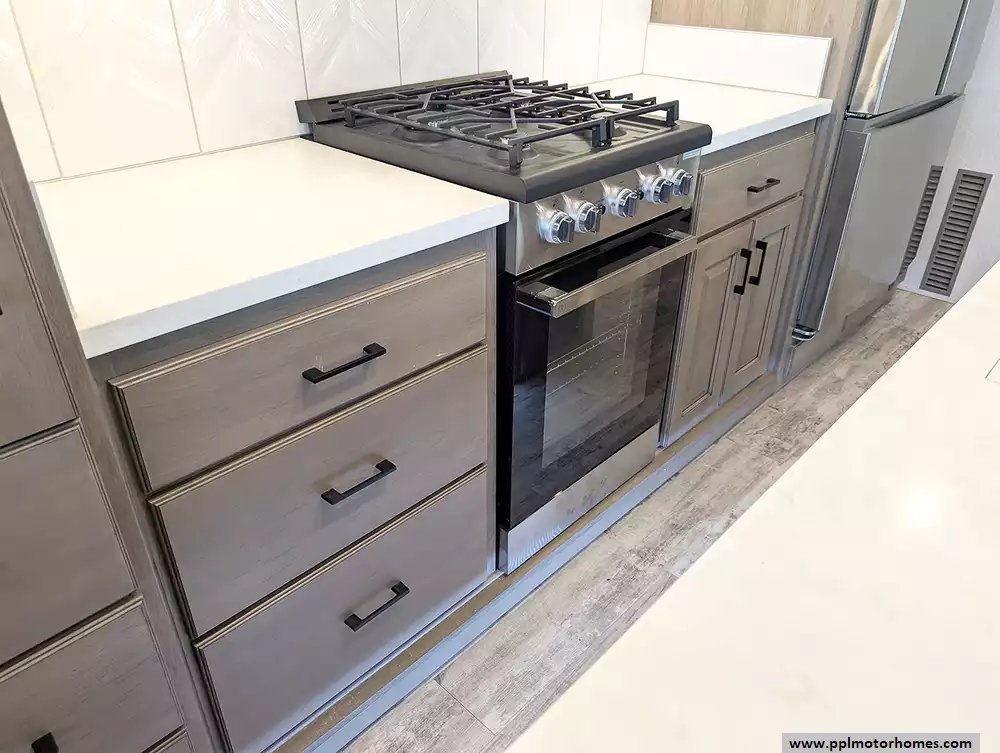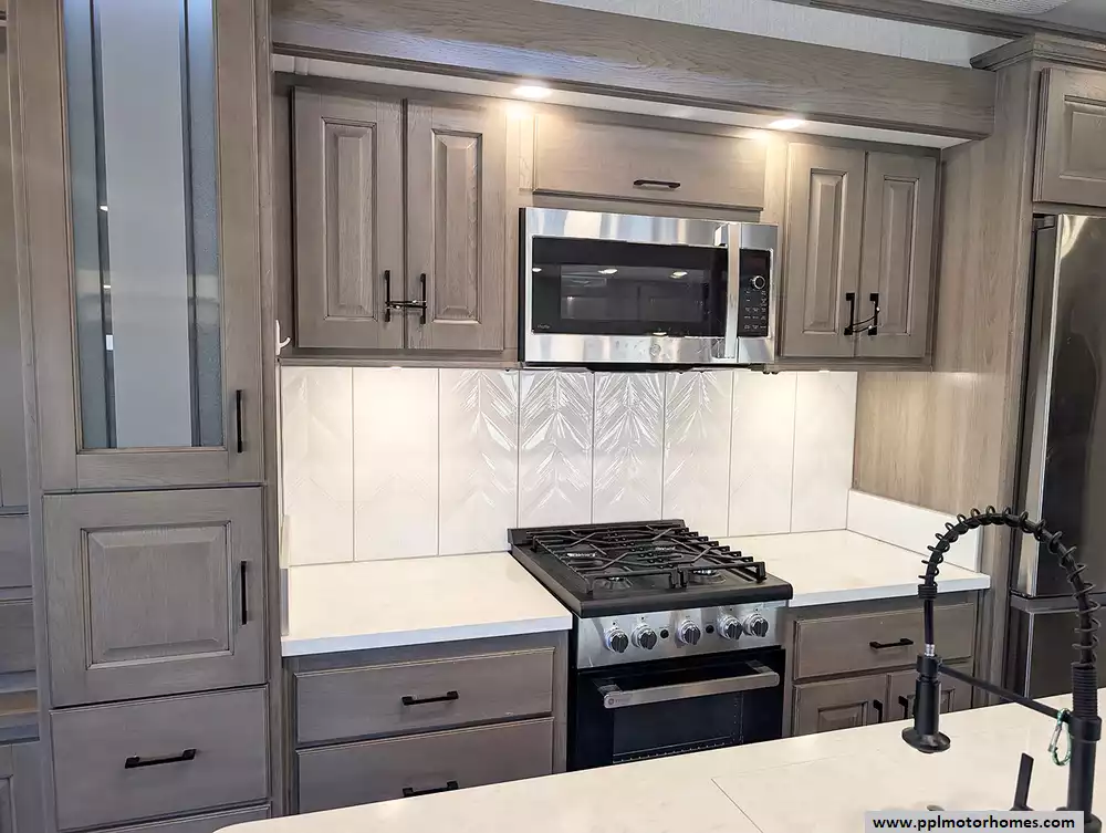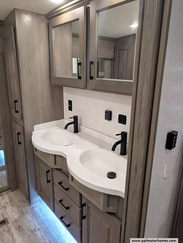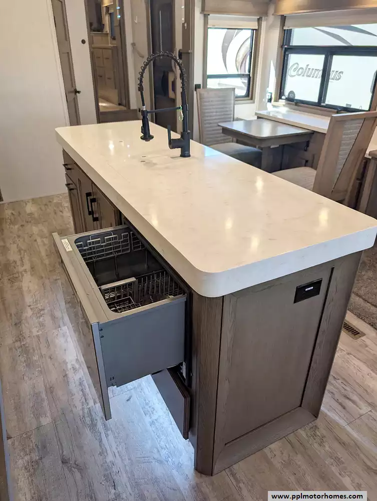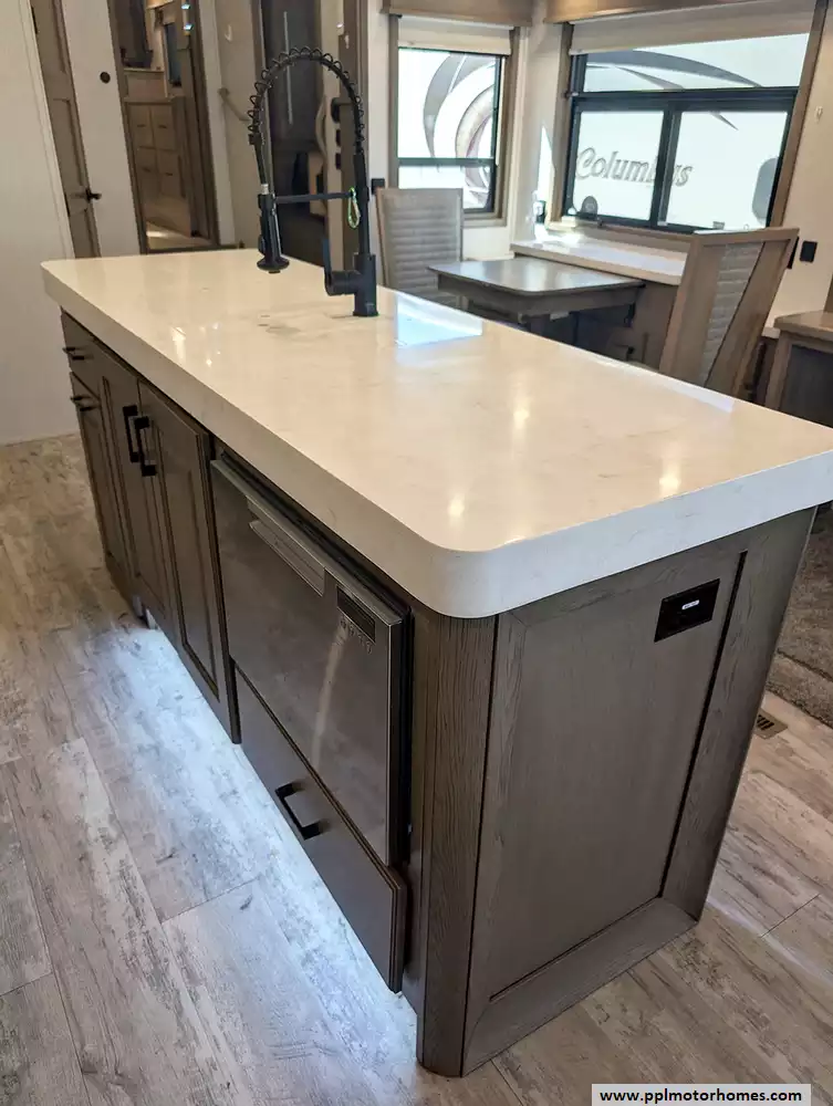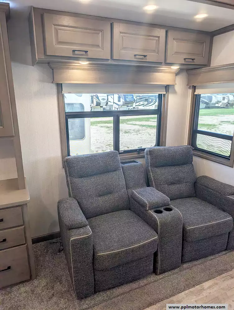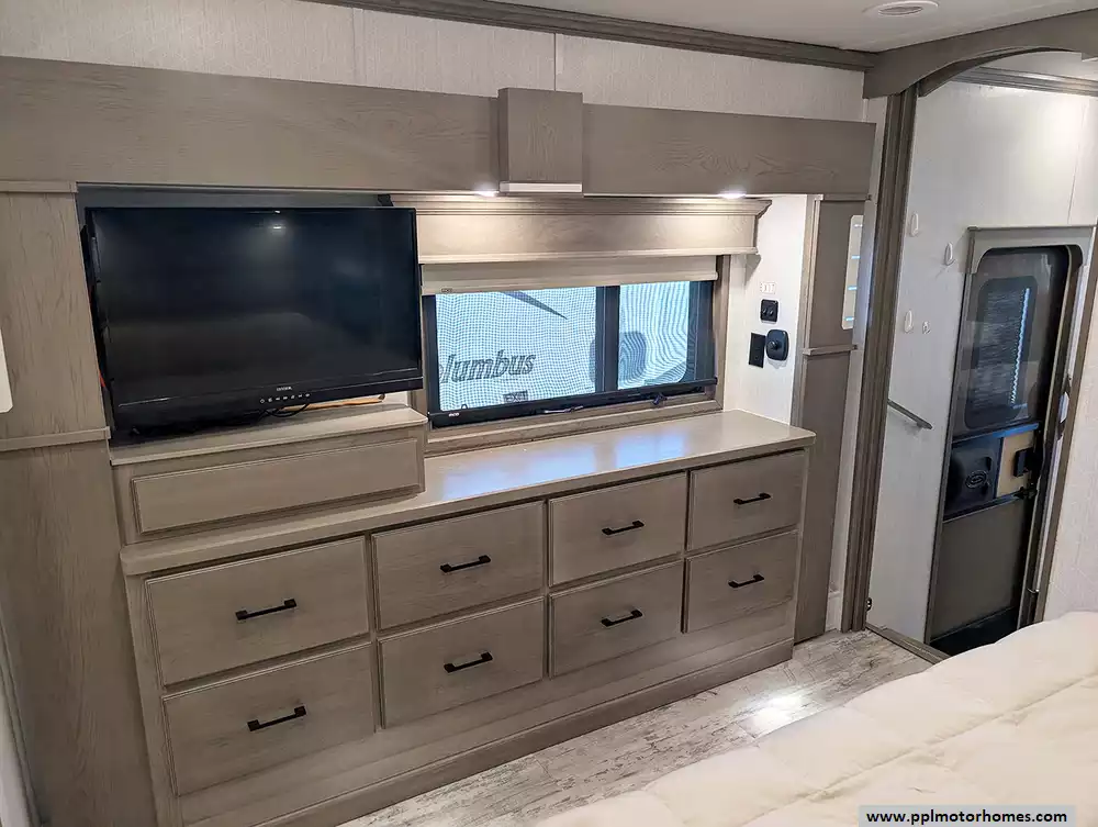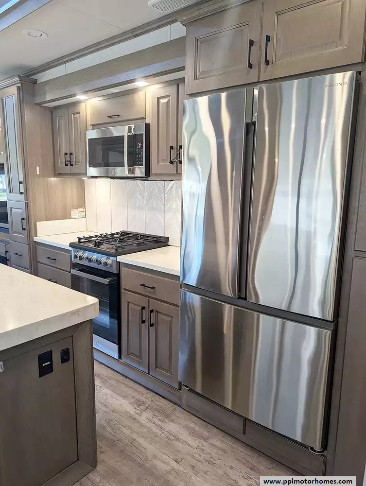 The interior of the Houston floorplan is a masterpiece of convenience, featuring a gourmet kitchen equipped with a residential Insignia refrigerator with an in-fridge ice maker, a dishwasher, a microwave, and a three-burner range with an oven. Long-term living is made easy with integrated washer/dryer connections and an entertainment center boasting two TVs and a DVD player for relaxing evenings. From the practical outside shower to the brand's legendary reputation for sophisticated style and all-season durability, this Mobile Suite is designed for those who refuse to compromise on comfort while pursuing the ultimate adventure.