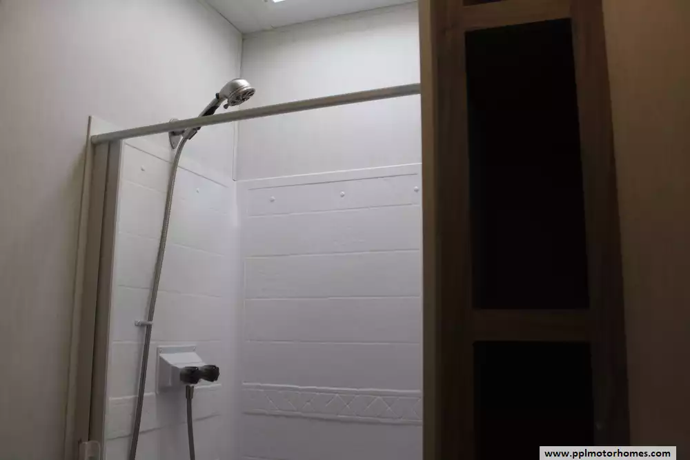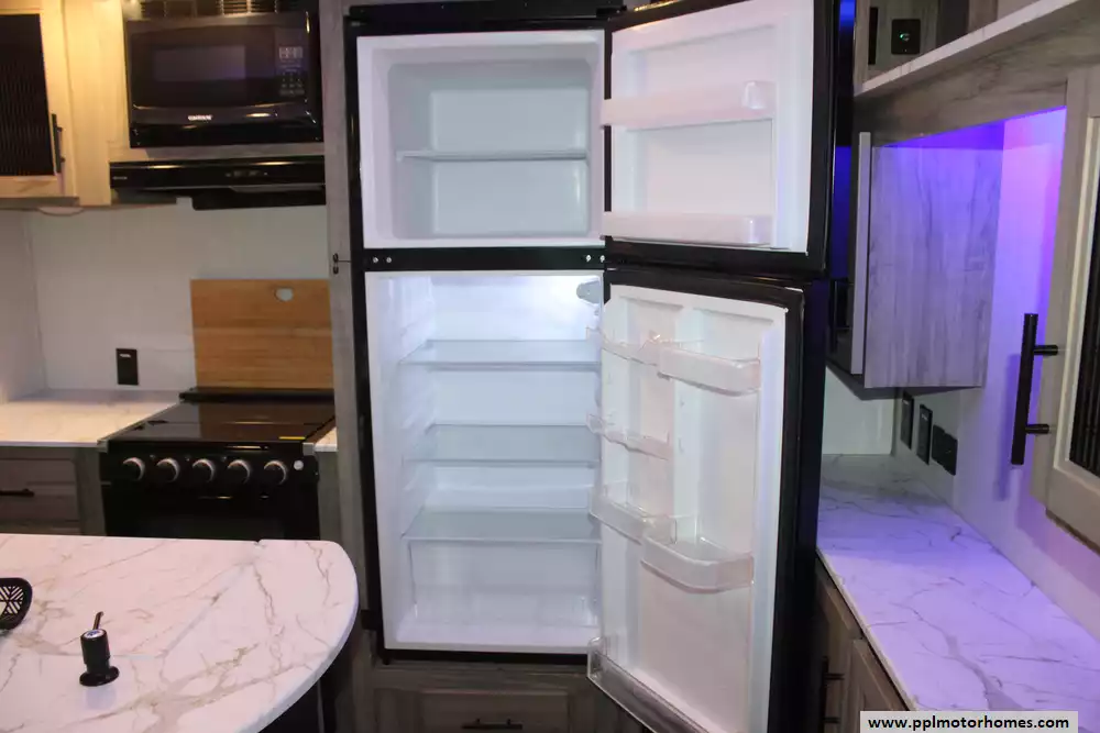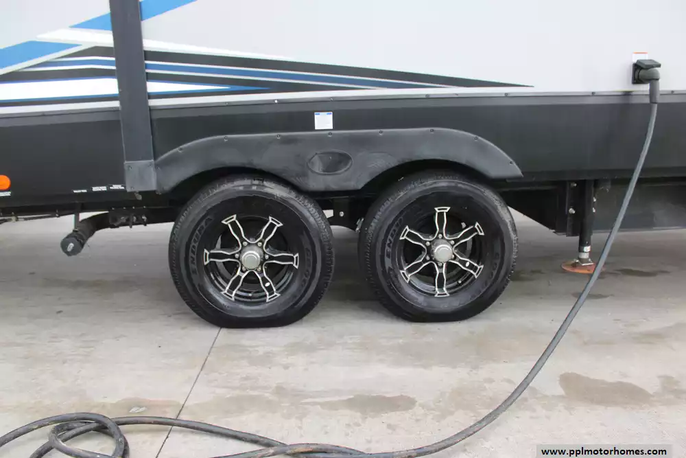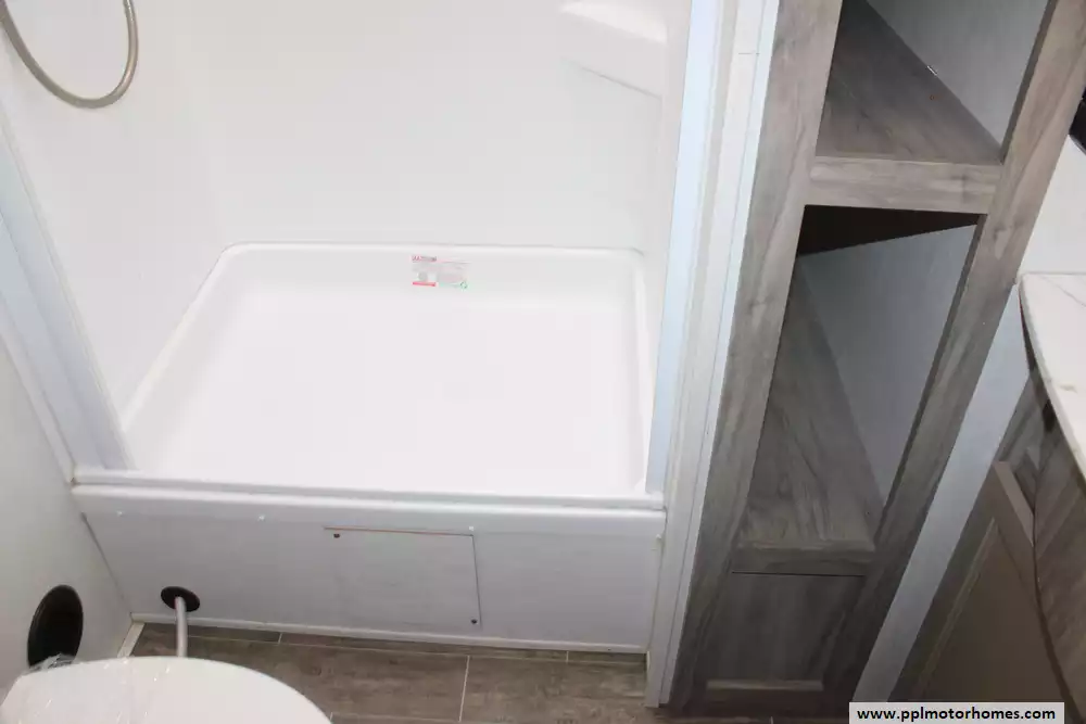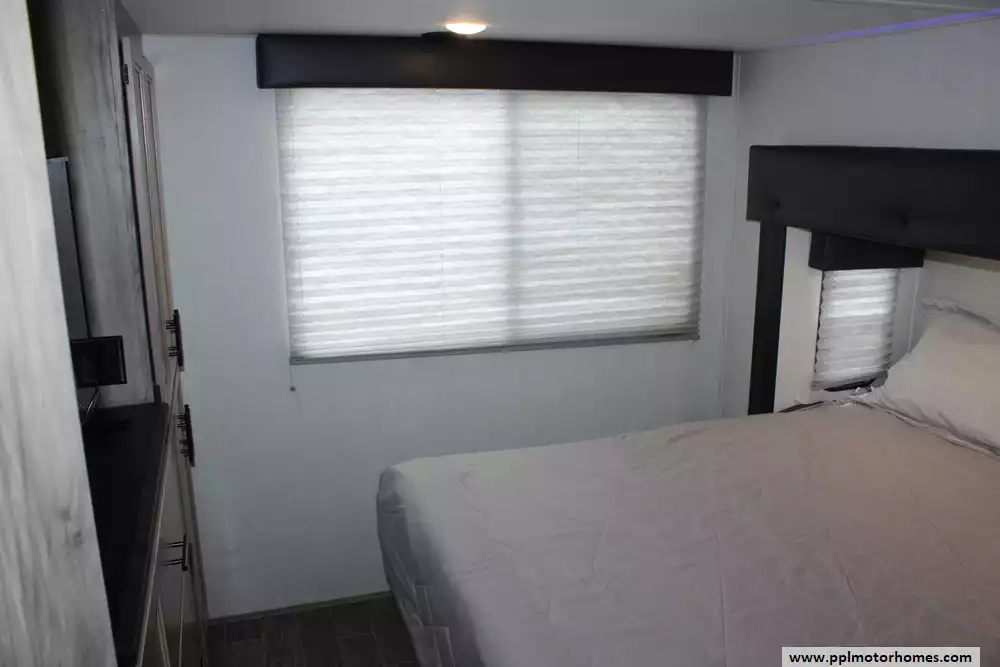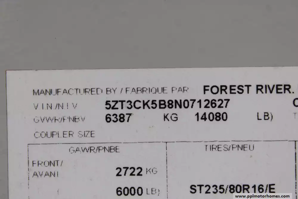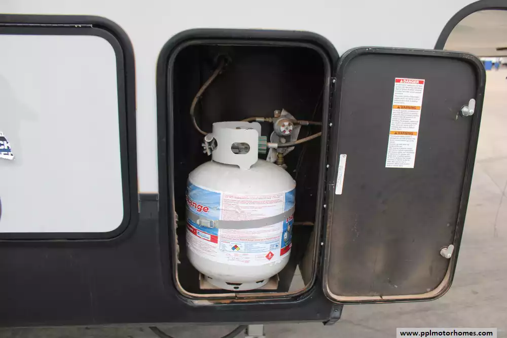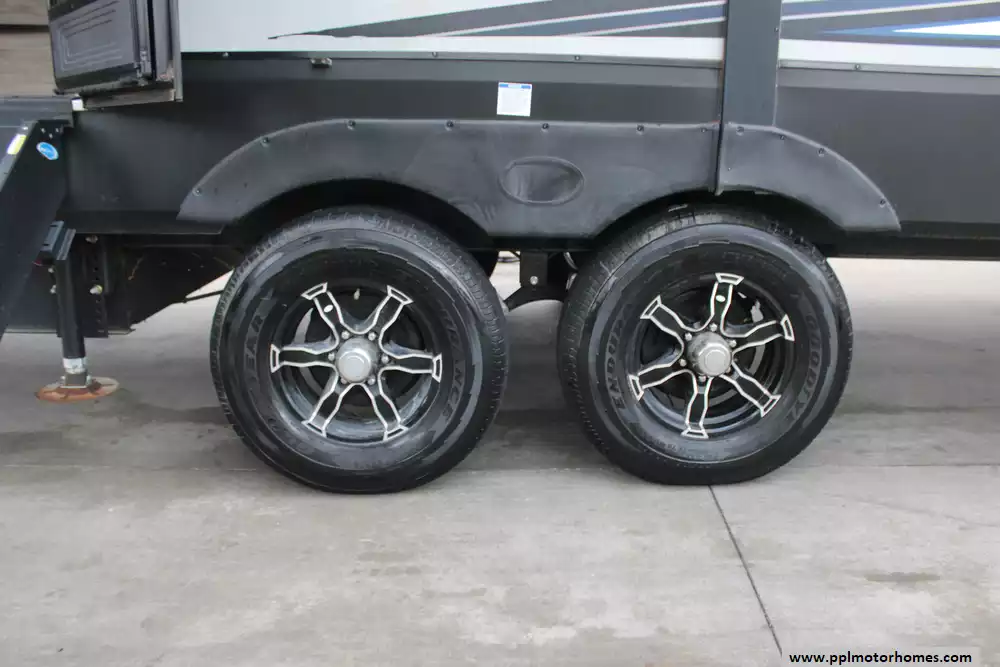 Specs: Length: 43.4 ft., Width: 8 ft., Height: 13.1 ft., Payload Capacity: 2,392 lbs., Total Fresh Water Tank Capacity: 49 gal., Total Grey Tank Capacity: 70 gal., Total Black Water Tank Capacity: 35 gal.