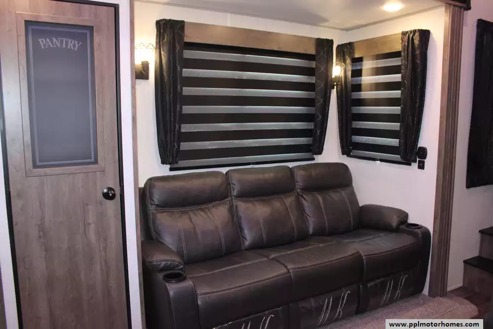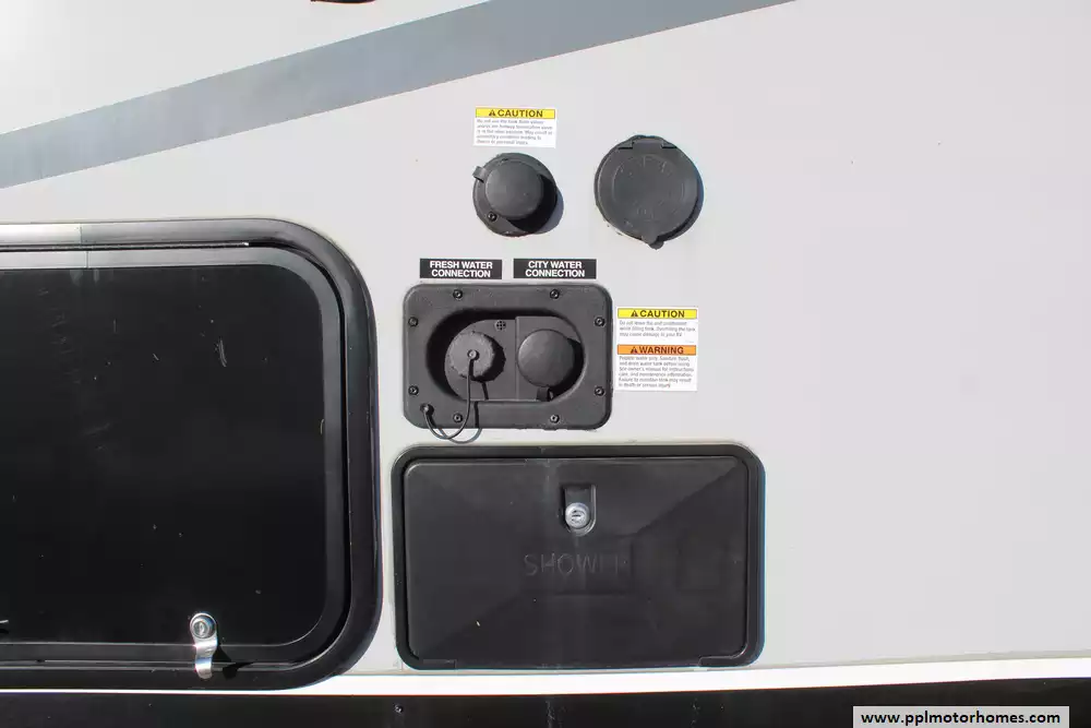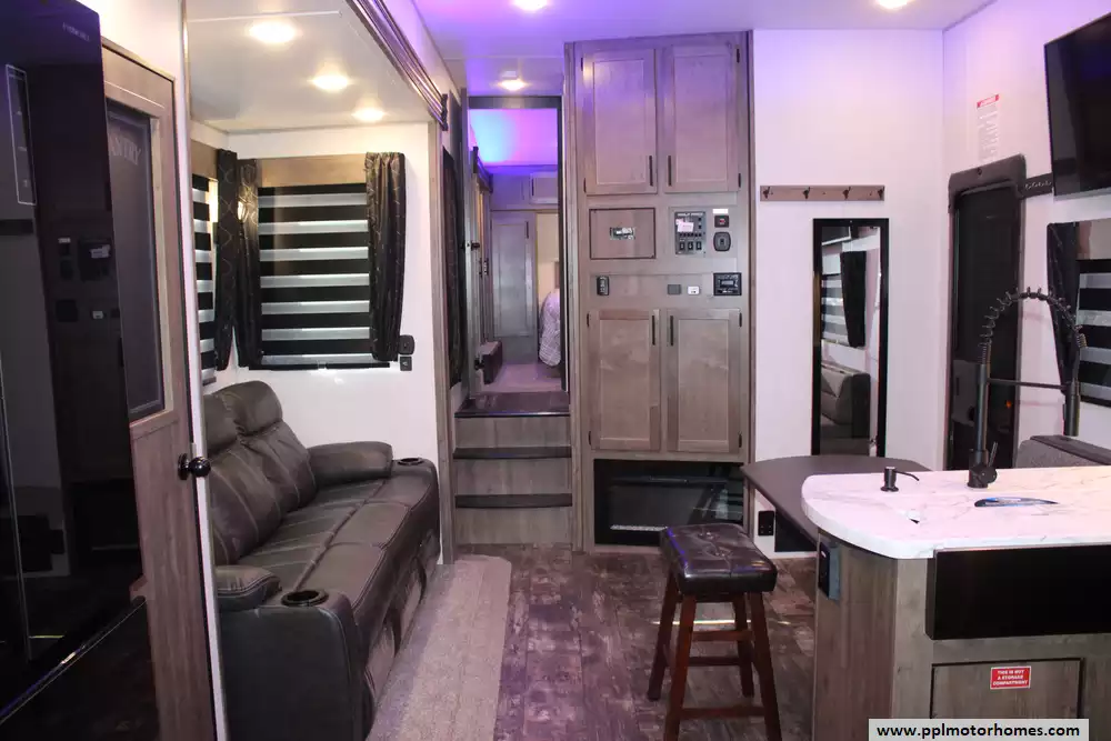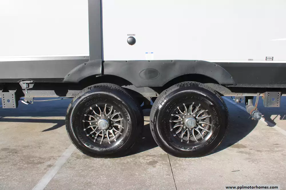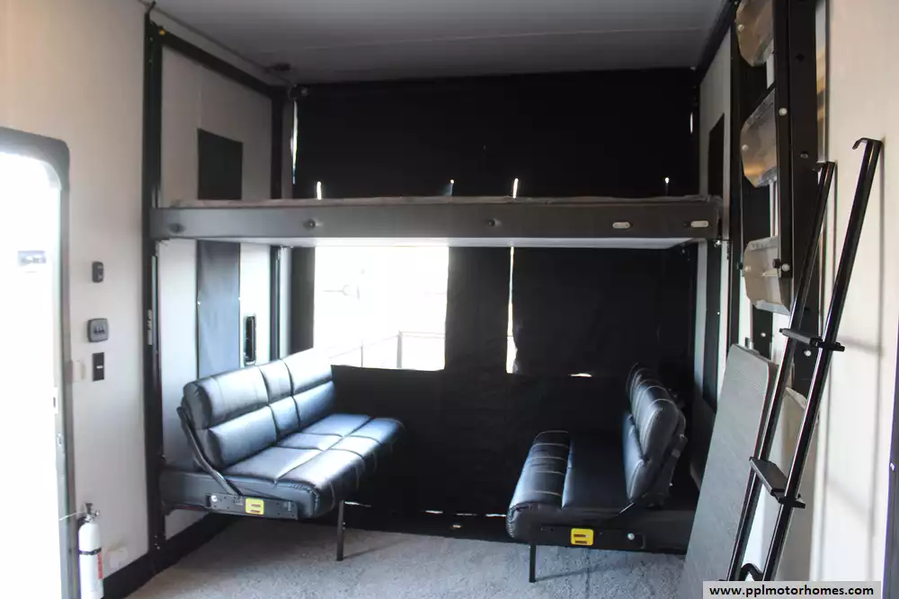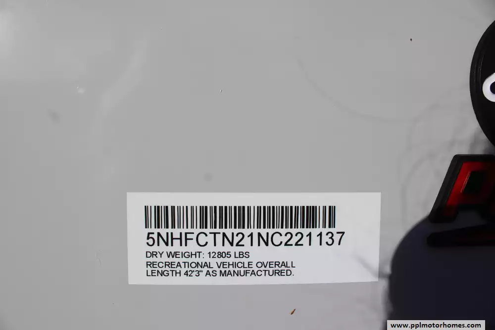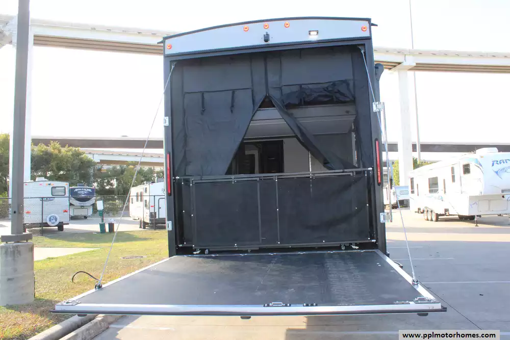 Specs: Length: 43.7 ft., Height: 13.5 ft., Payload Capacity: 4,382 lbs., Total Fresh Water Tank Capacity: 96 gal., Total Gray Water Tank Capacity: 76 gal., Total Black Water Tank Capacity: 76 gal.