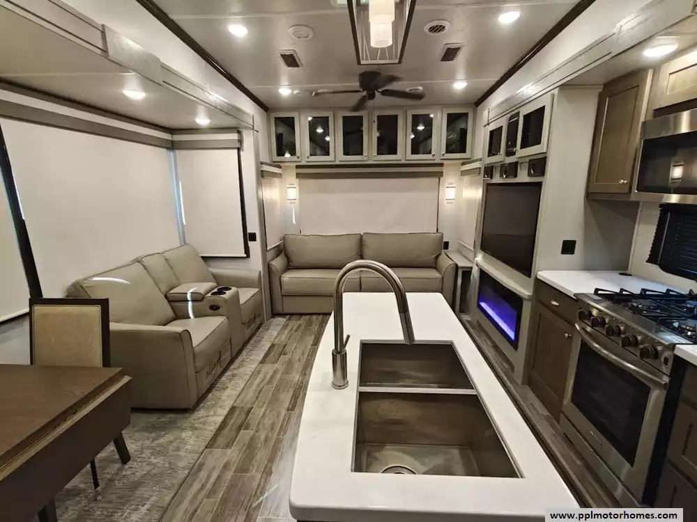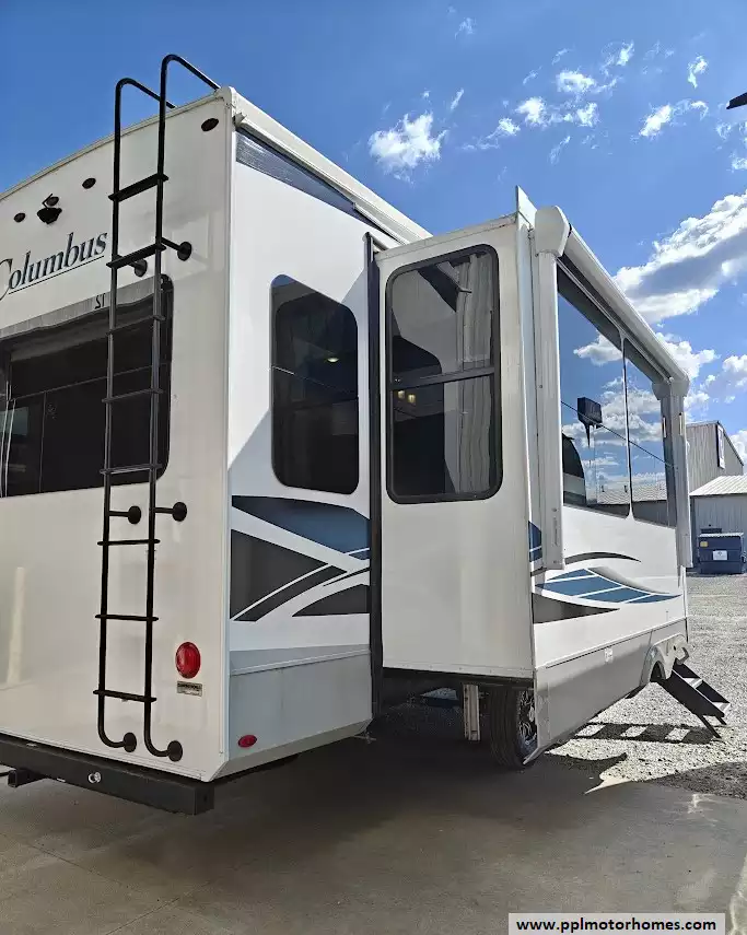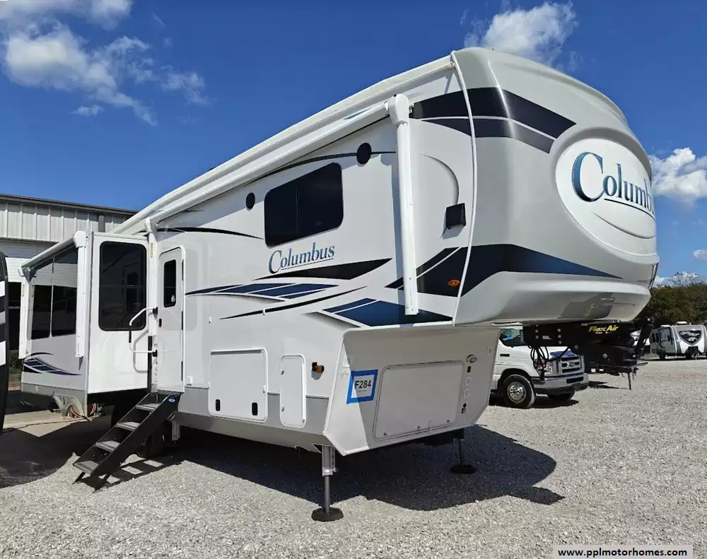 This 2022 Columbus 299RL is a feature-rich, luxury fifth-wheel designed for comfort and functionality. Perfect for a couple or small family, sleeps up to 4 people. Amenities Include....Hydraulic Landing Gear with Auto Leveling, Side and Rear Cameras, Tire Pressure Monitoring, 3 Slide-outs with Slide Toppers, MaxxAir Vents Onan Propane Generator, 12V Tank Heating Pads, 2 Ducted Air Conditioners, 4 Door Residential Lg Refrigerator, In-Fridge Ice Maker, Automatic Main Awning, Washer/Dryer Connections, Outside Speakers, 2 TVs, JBL Sound Bar and Speakers, Ceiling Fan in Living Area, Pantry, Spacious Master Closet with Built In Shelves, Upgraded Mattress, Reading Lights Above Bed, Outside Shower, Central Vacuum, Microwave, 4 Burner Range and Full Size Oven.