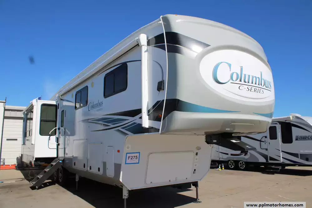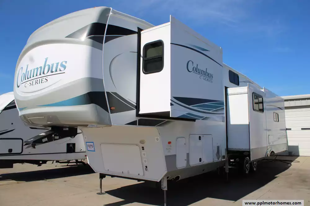 The 2022 Palomino Columbus C-Series 379MBC is a luxurious fifth wheel designed for families and full-time RVers seeking ample space and high-end amenities. Spanning 41 feet in length and featuring four slide-outs, this model offers a spacious interior with a rear living area, a central kitchen island, and a middle bunkhouse with a flip-up bunk and tri-fold sofa, ideal for children or guests. The front master suite includes a king-size bed, dual wardrobes, and a closet prepped for a washer/dryer. Additional highlights include a loft area for extra storage or sleeping space, a full bathroom with a spa-style shower, and a kitchen equipped with a four-burner cooktop, 20 cu. ft. residential refrigerator, and a walk-in pantry. Exterior features comprise dual 15,000 BTU air conditioners, two power awnings with LED lighting, an outdoor kitchen, and a 2-inch receiver hitch for towing. Constructed with a 101-inch wide body, MORryde CRE3000 suspension system, and R-40 roof insulation, the Columbus 379MBC ensures durability and comfort in various climates. With a brand-new roof, all it needs is a new owner! Let the memories begin!!