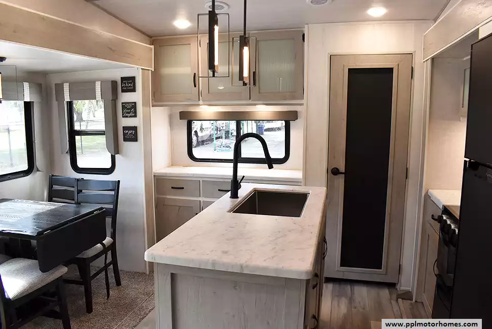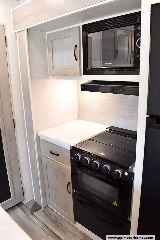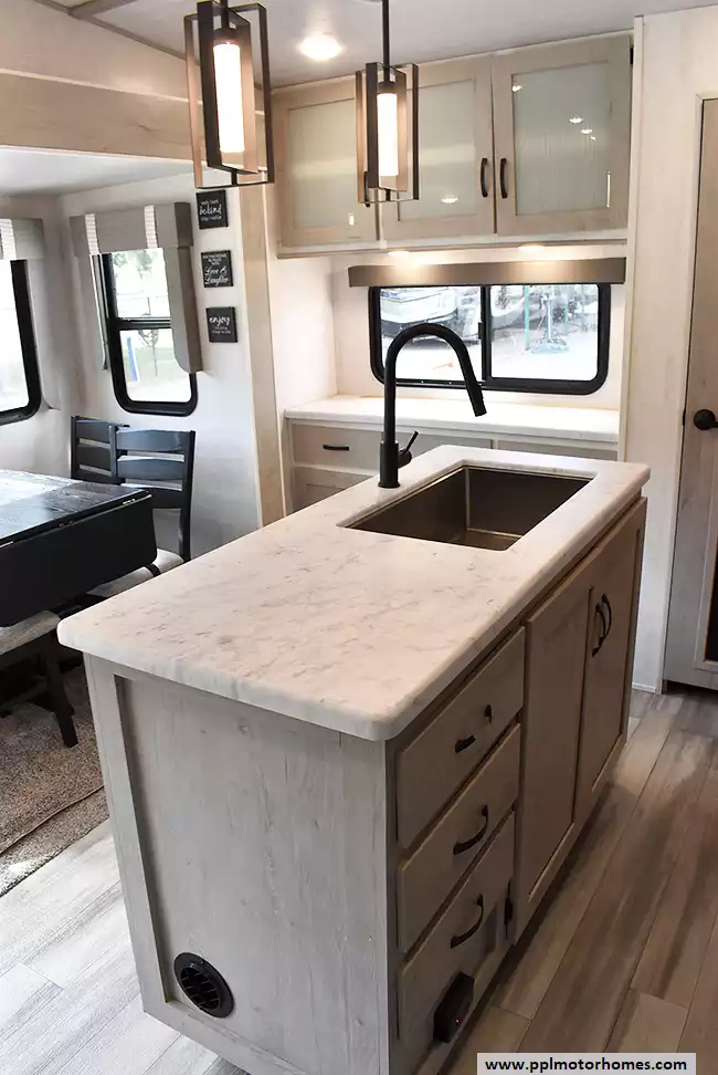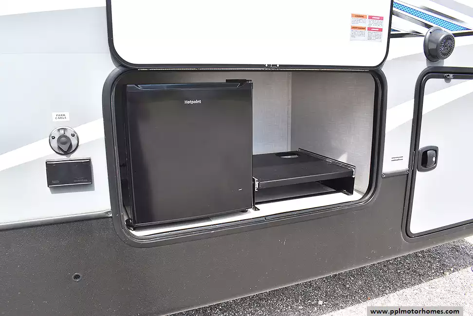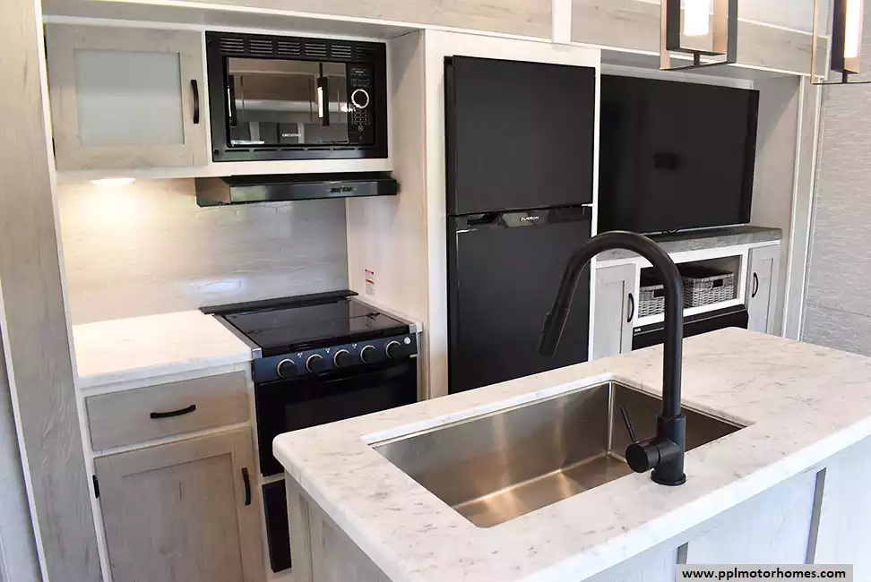 This 2022 Impression 315MB has an Electric Landing Gear, 4 Slide-outs, 2 Ducted Air Conditioners, Double Door 12v Furrion Refrigerator, Automatic Main Awning, Heated Tanks, Outside Speakers, 2 TVs, Outside Shower, Fireplace, Microwave, 3 Burner Range, Oven