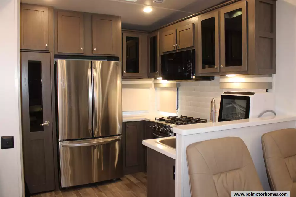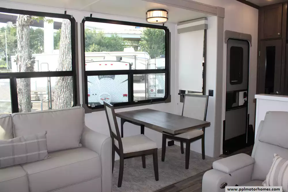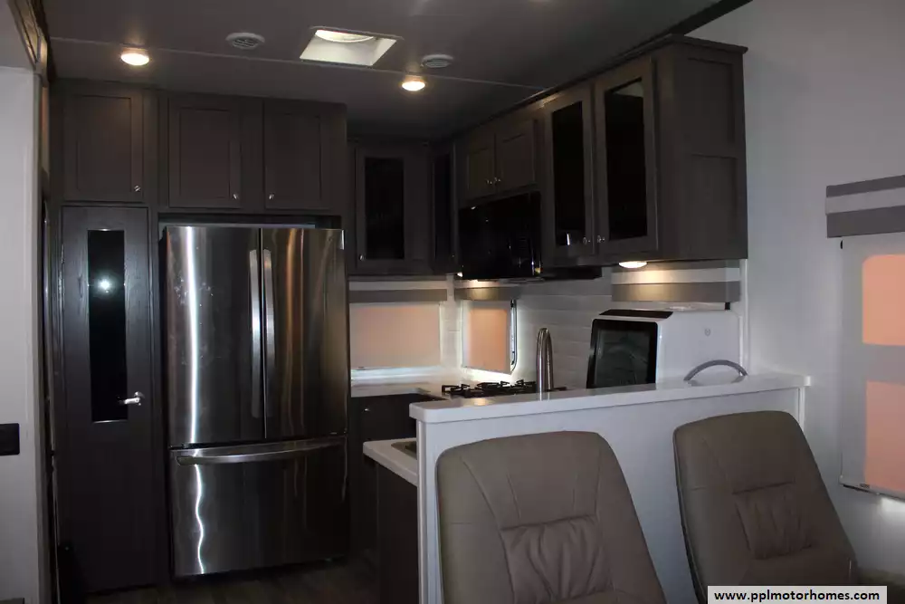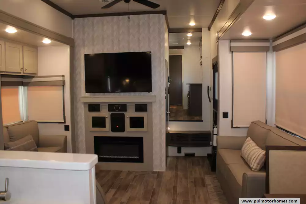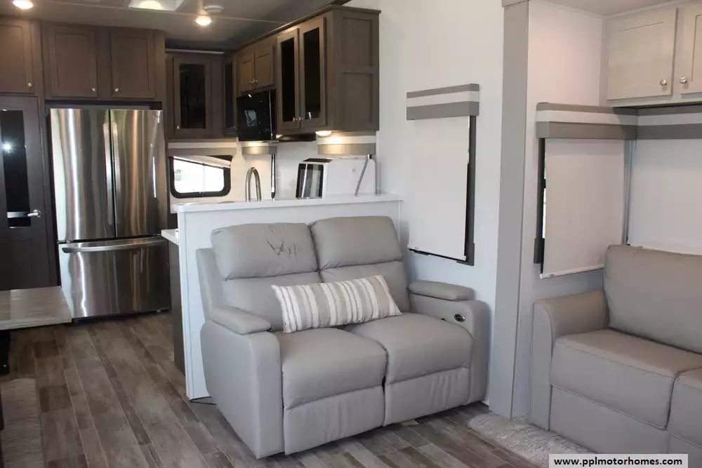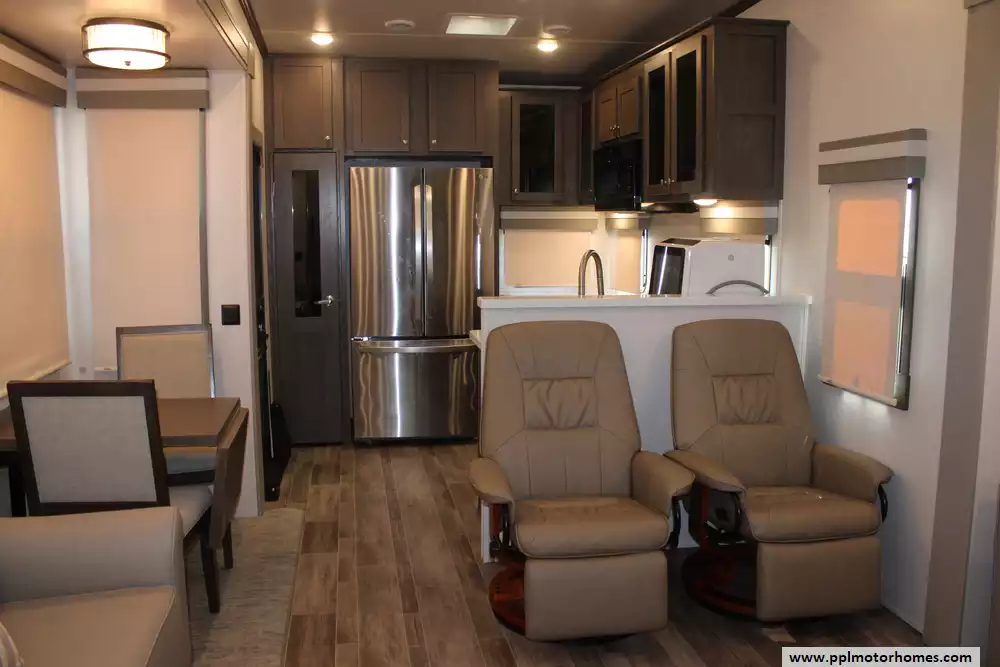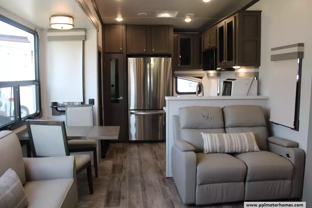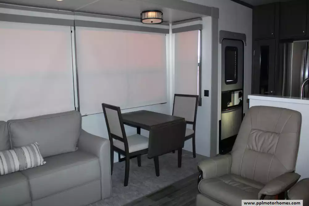 This 2022 Palomino Columbus 384RK is a feature-rich, luxury fifth-wheel designed for comfort and functionality. Amenities Include...3 Slide-outs, 2 Ducted Air Conditioners, Residential Lg Refrigerator, In-Fridge Ice Maker, Automatic Main Awning And Window Awning, Washer/Dryer, Dishwasher, 2 TVs, Outside Shower, Fireplace, Central Vacuum, Convection Microwave, 4 Burner Range, and Oven.