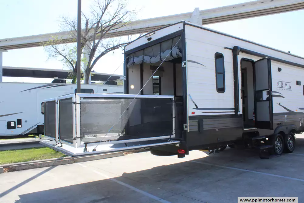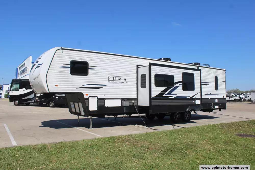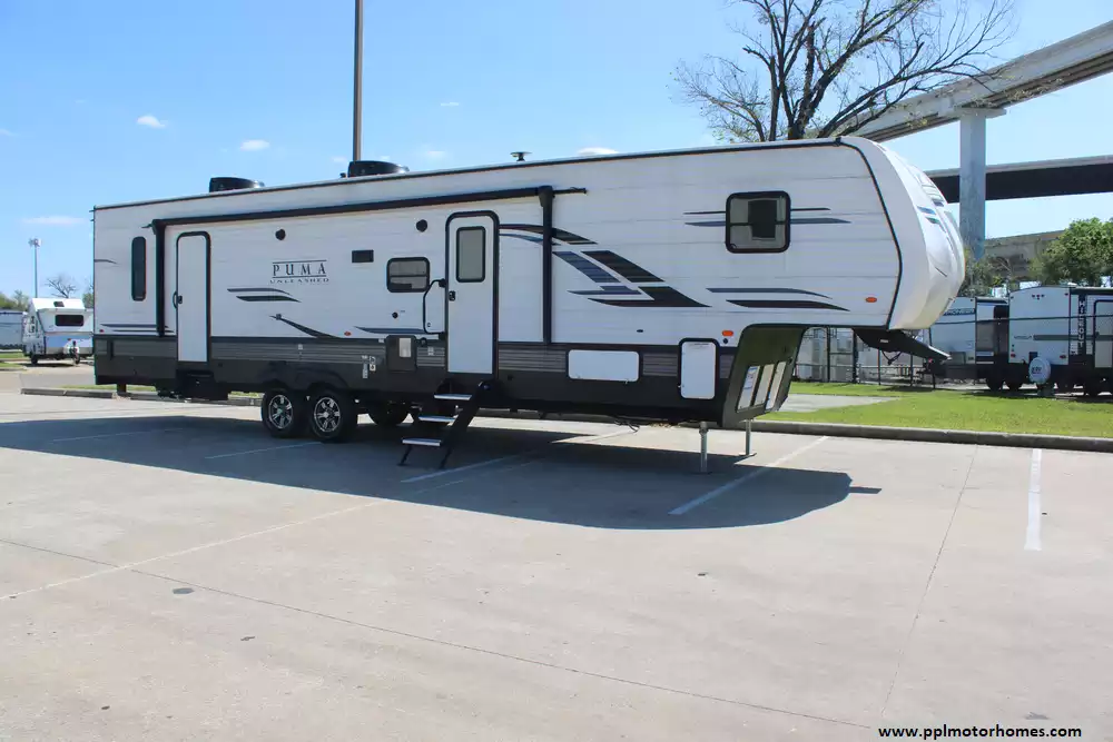 Experience the ultimate blend of rugged utility and residential comfort with this 2022 Palomino Puma Unleashed 382THS. Known for its versatile floor plan and high-value construction, the Puma Unleashed series has built a strong reputation among outdoor enthusiasts who refuse to leave their gear behind. This 39-foot fifth wheel features a durable aluminum body and a reliable rubber roof, offering the heavy-duty performance required for hauling motorcycles, ATVs, or golf carts while maintaining a sophisticated living space. Whether you are hitting the backcountry or parked at a premier resort, this model provides the perfect basecamp for those who live an active lifestyle.