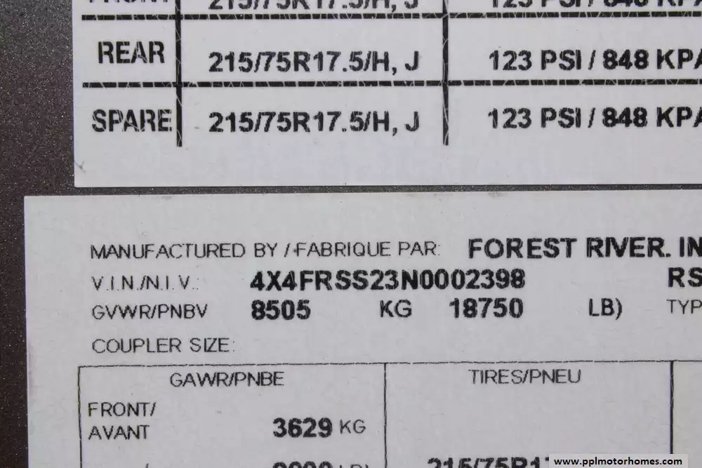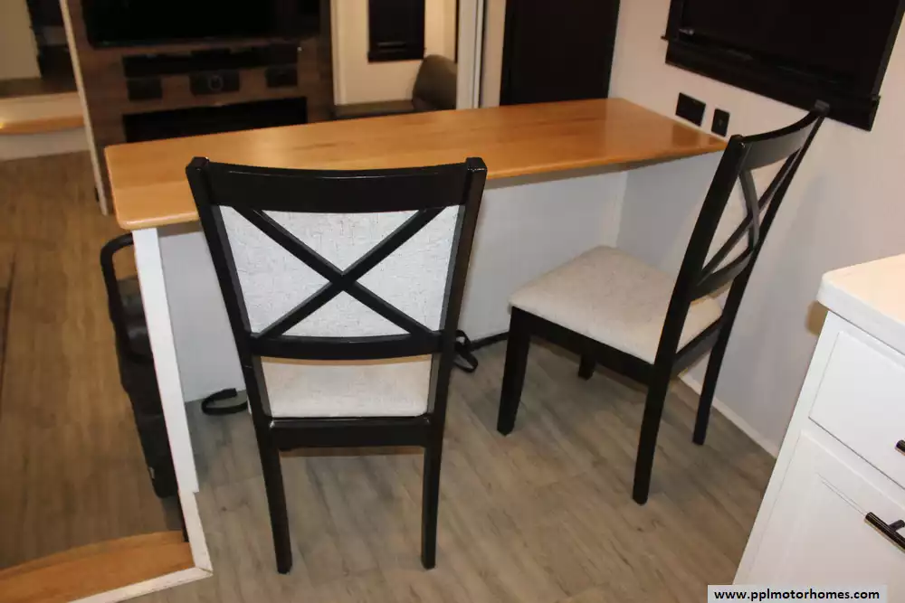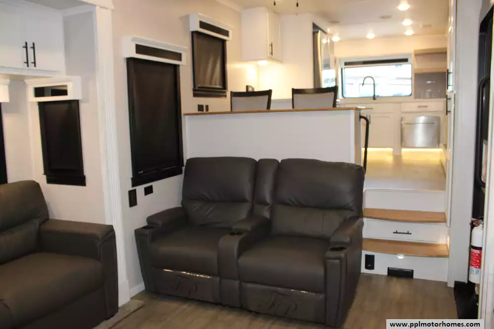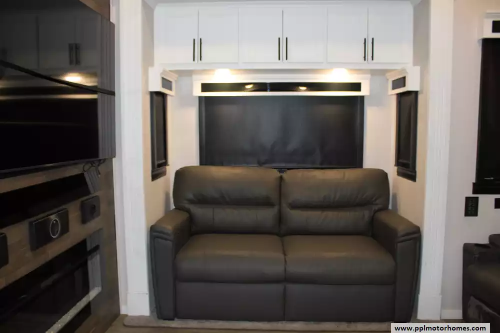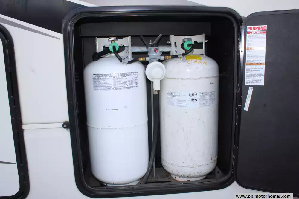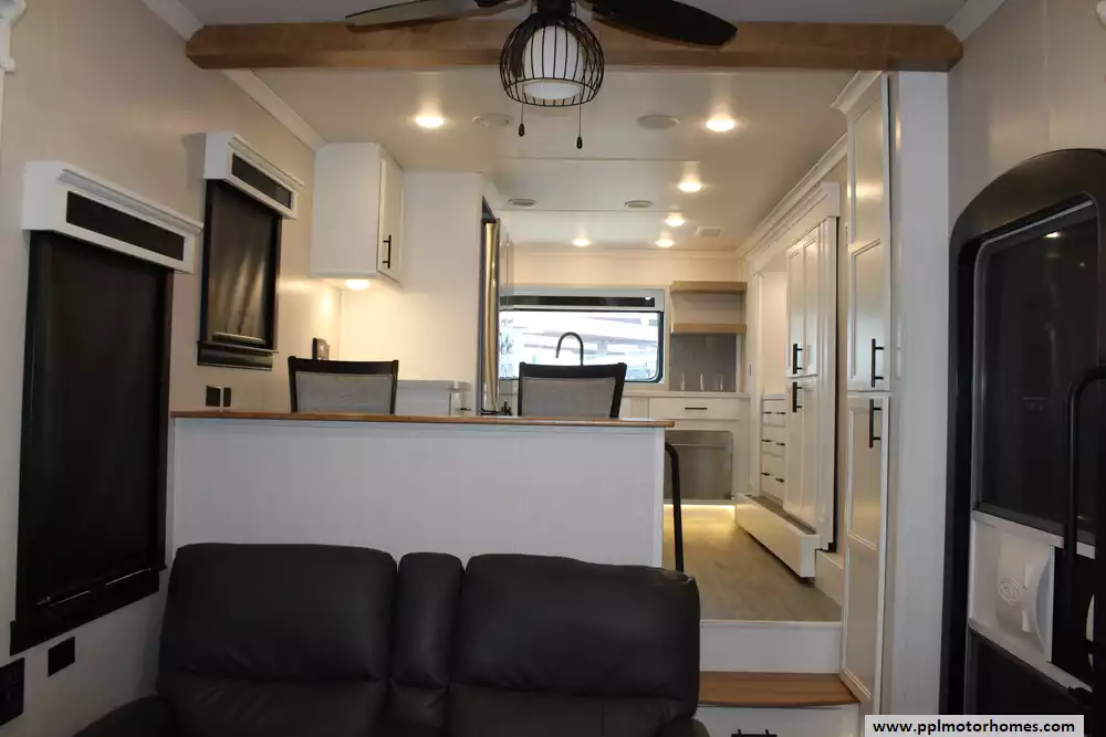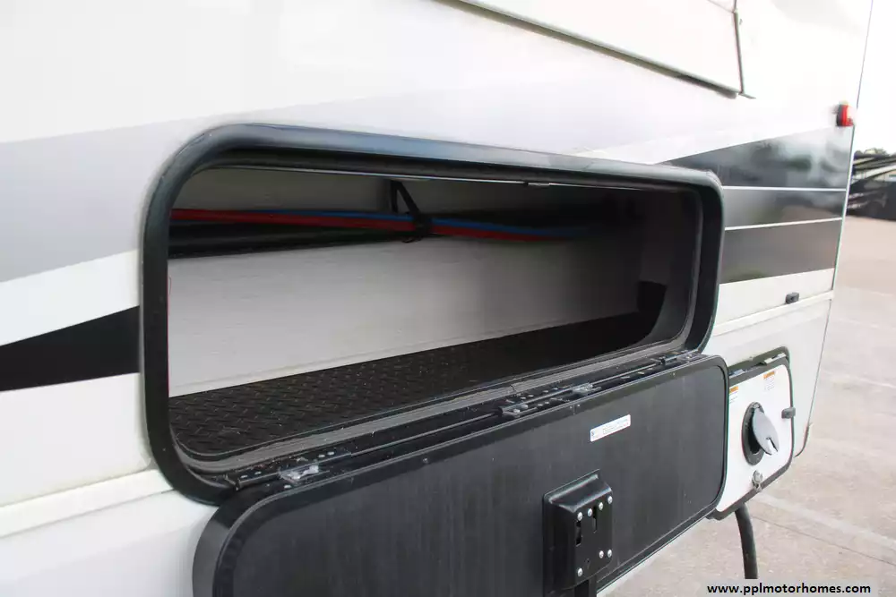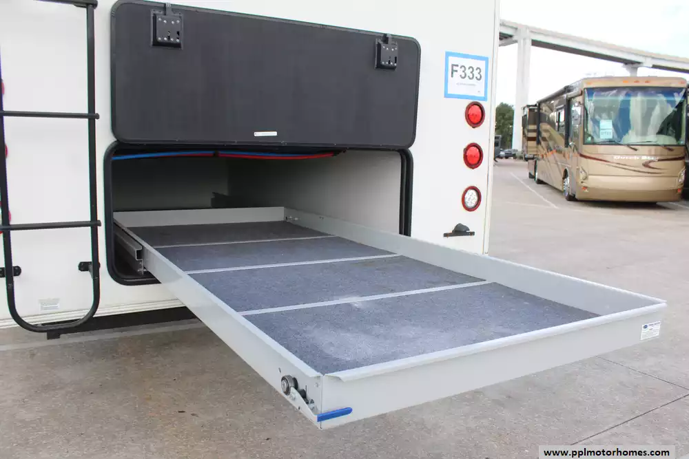 Specs: Length: 42.5 ft., Width: 8.5 ft., Height: 13.33 ft., Payload Capacity: 2,619 lbs., Total Fresh Water Tank Capacity: 83 gal., Total Gray Water Tank Capacity: 82 gal., Total Black Water Tank Capacity: 41 gal., Total Number of Propane Tanks: 2, Total Propane Tank Capacity: 80 lbs.