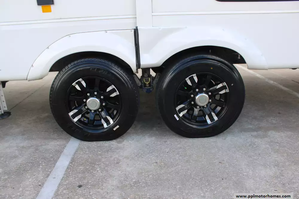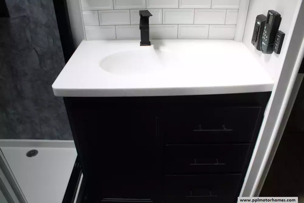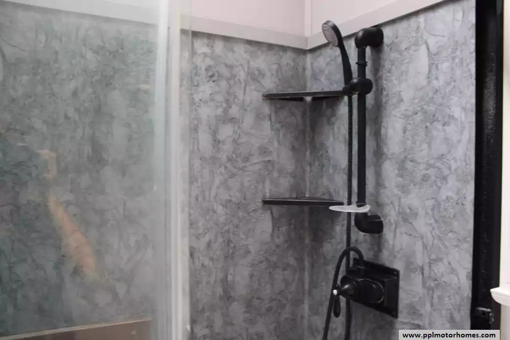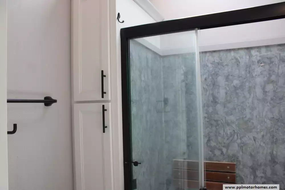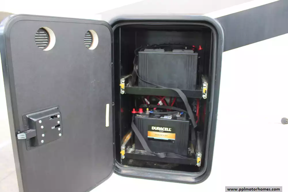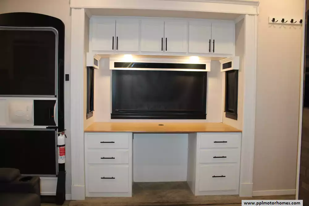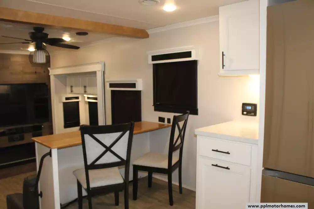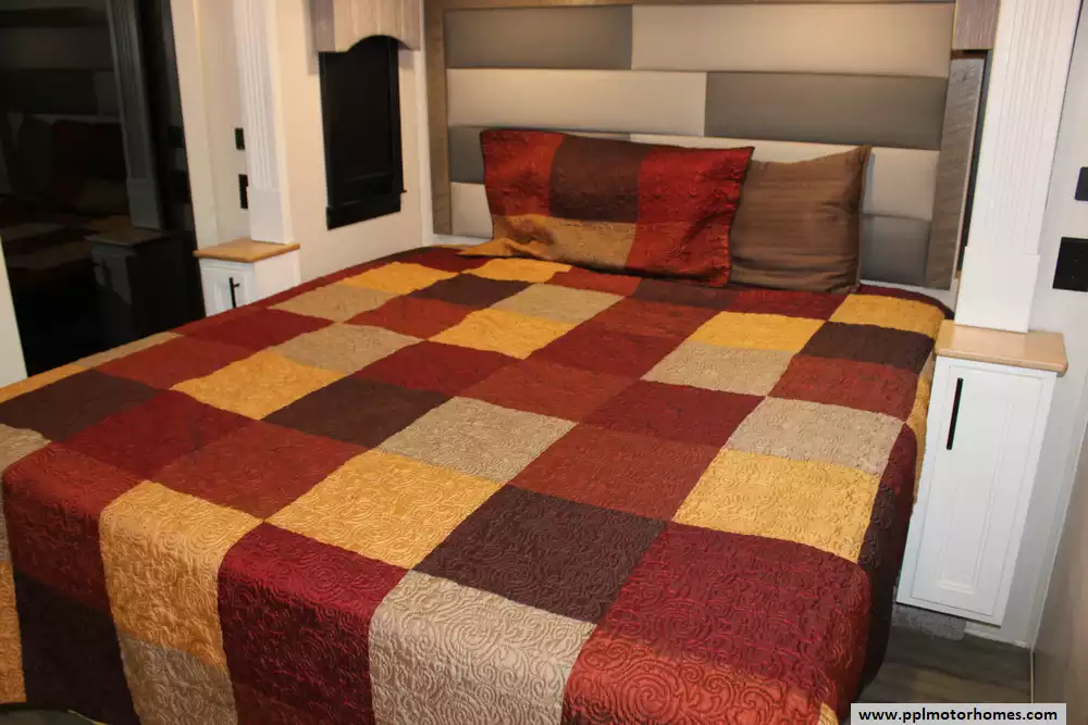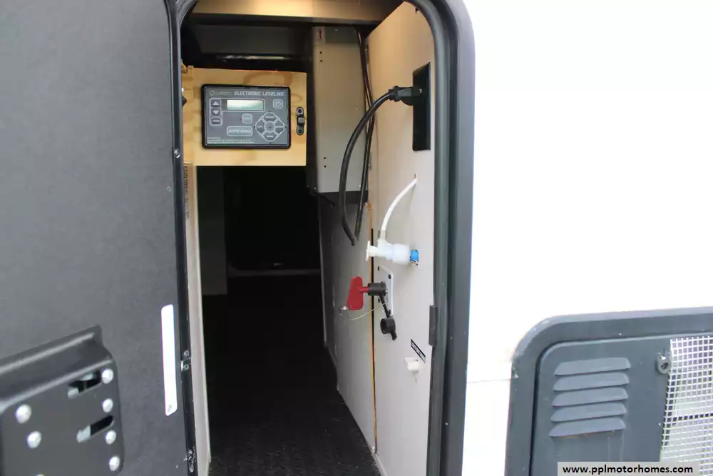 Specs: Length: 42.5 ft., Width: 8.5 ft., Height: 13.33 ft., Payload Capacity: 2,619 lbs., Total Fresh Water Tank Capacity: 83 gal., Total Gray Water Tank Capacity: 82 gal., Total Black Water Tank Capacity: 41 gal., Total Number of Propane Tanks: 2, Total Propane Tank Capacity: 80 lbs.