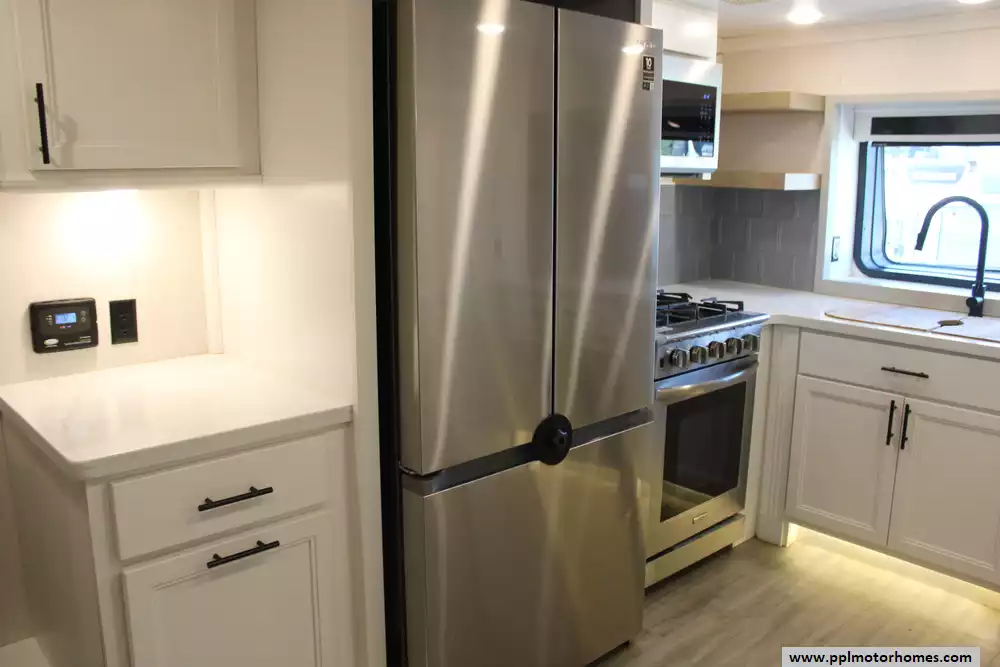 This 2022 Riverstone 3950FWK is designed for comfort, high end amenities, and longer stays. Features Include...4 Slide-outs, 3 Ducted Air Conditioners, Residential Samsung Refrigerator, In-Fridge Ice Maker, Automatic Main Awning, Washer/Dryer, Dishwasher, Outside Entertainment System, 2 TVs, Outside Shower, Fireplace, Central Vacuum, Convection Microwave, 4 Burner Range, and Oven.