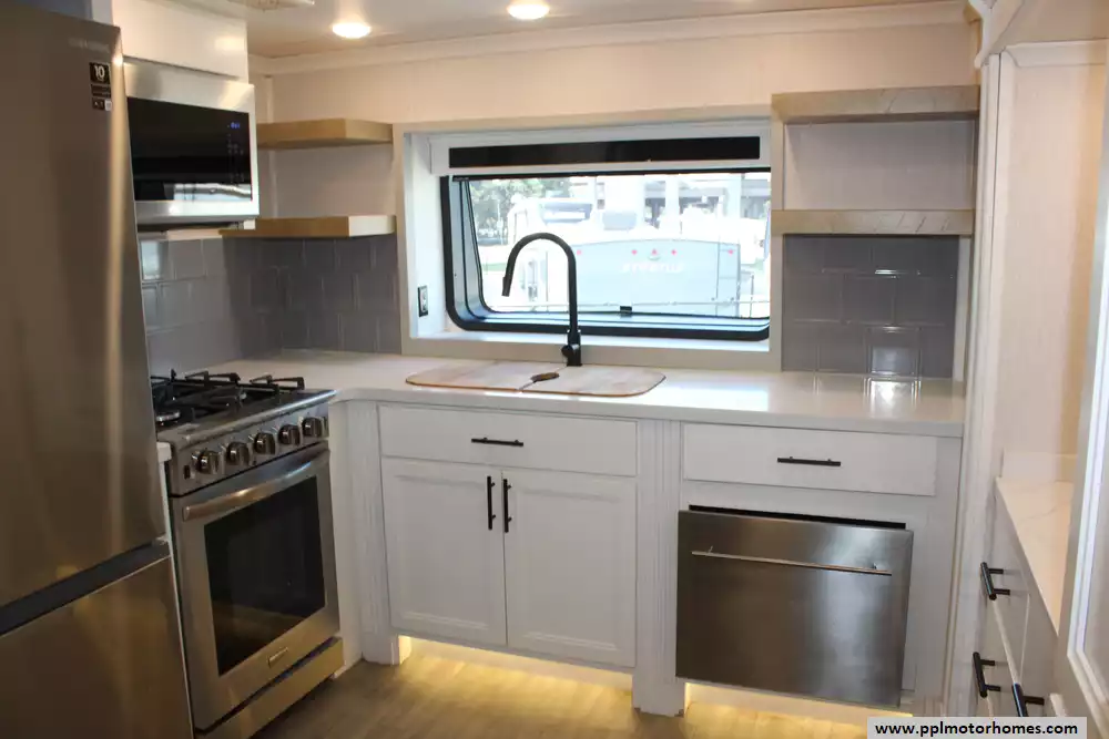 (Floor plan is NOT drawn to scale. Length of vehicle is approximate. Buyer is responsible for verifying actual length. PPL Motor Homes compiled this list of features, specifications, equipment and options as a guide. No representation or warranties, either express or implied, are made as to the accuracy of the information herein. Please verify for yourself all items listed before purchase.)