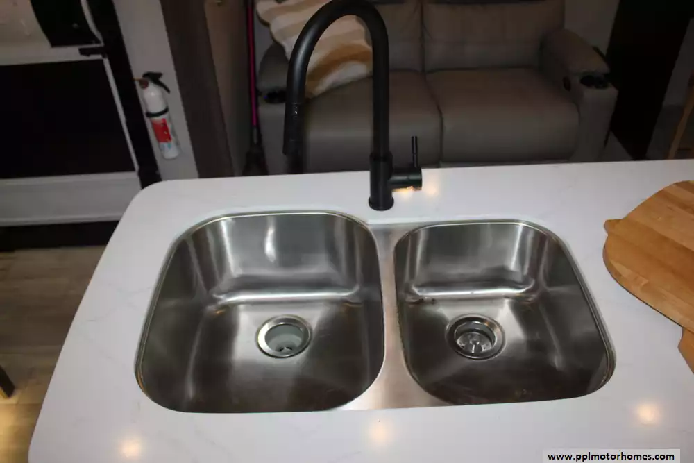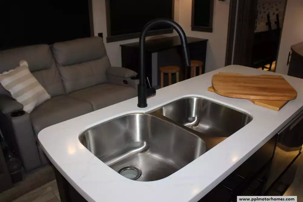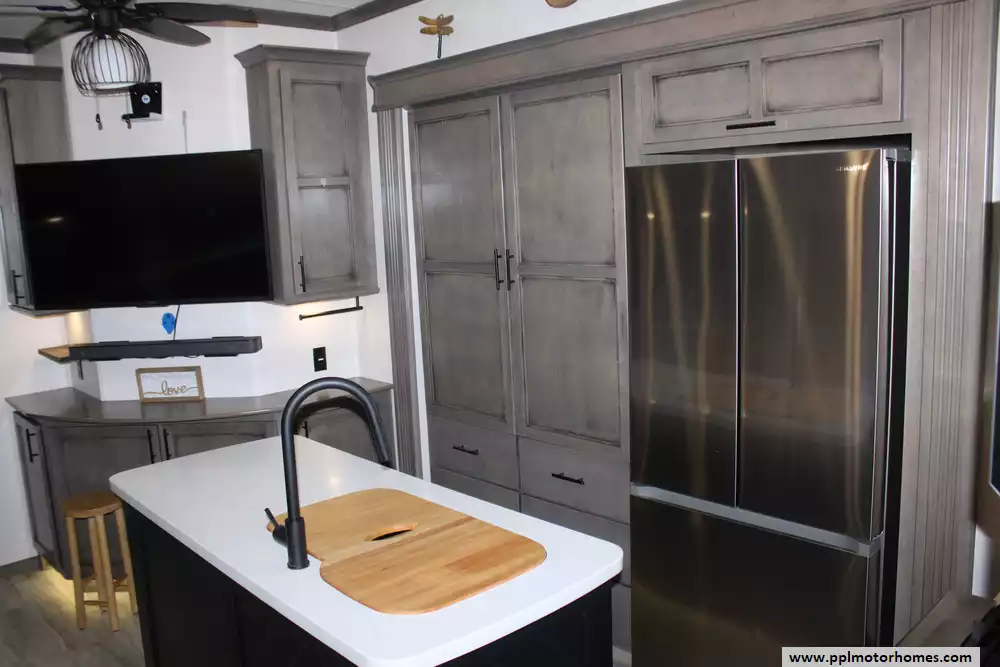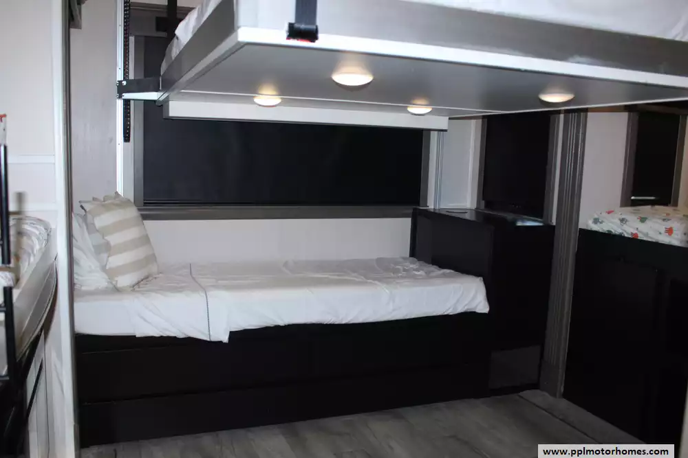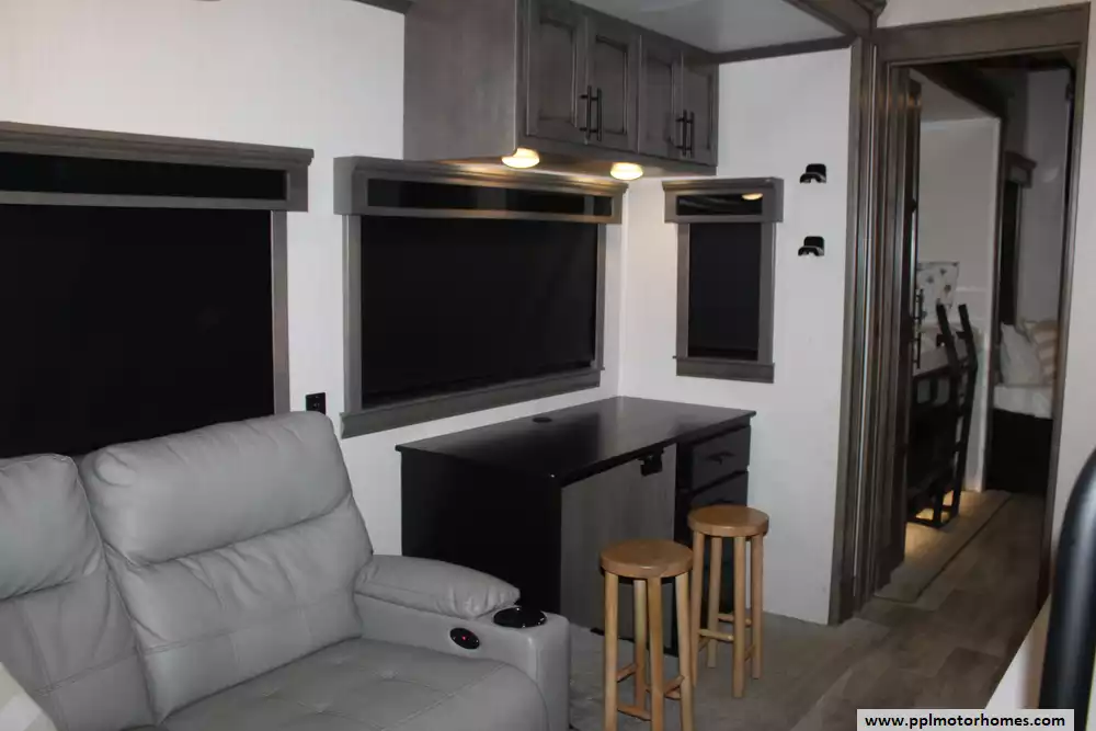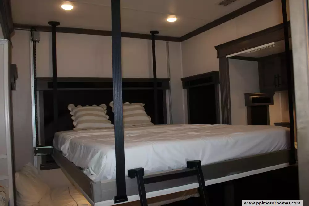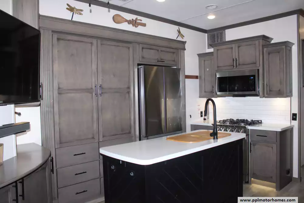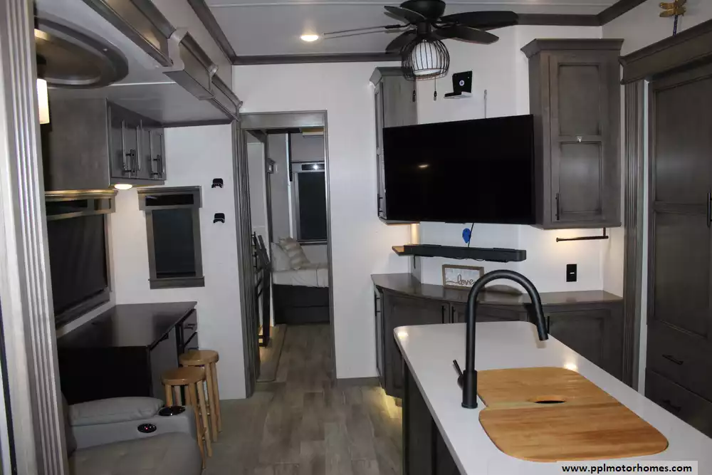 Specs: Length: 45 ft., Height: 13.4 ft., Payload Capacity: 1,945 lbs., Total Fresh Water Tank Capacity: 79 gal., Total Grey Tank Capacity: 80 gal., Total Black Water Tank Capacity: 40 gal.