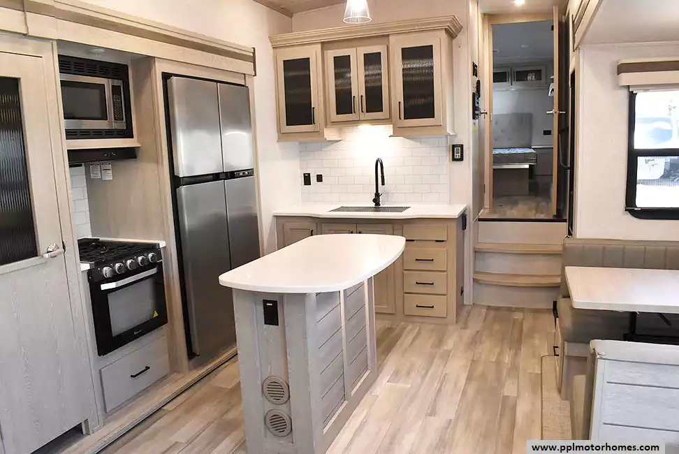 This 2022 Rockwood by Forest River 2883WS has an Electric Landing Gear, 3 Slide-outs, 2 Ducted Air Conditioners, 4 Door Gas/12v Norcold Refrigerator, Automatic Main Awning And Slide Awning, Outside Speakers, TV, DVD Player, Outside Shower, Fireplace, Microwave, 3 Burner Range, Oven