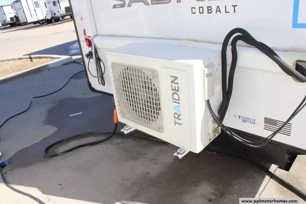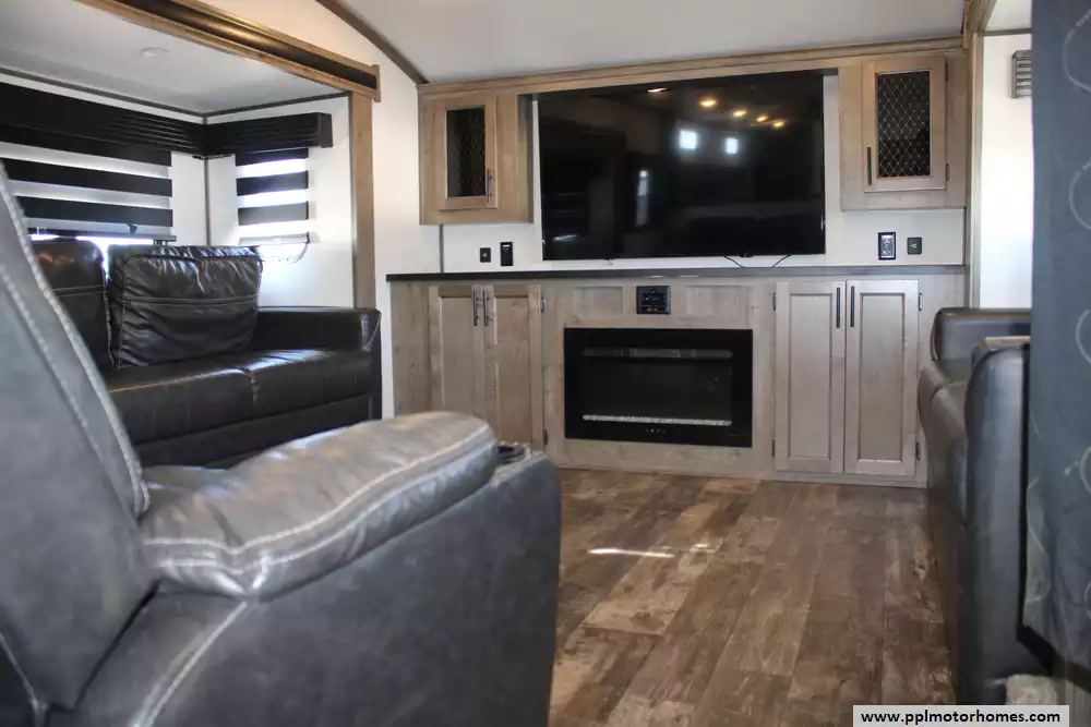 The 2022 Forest River Sabre Cobalt 37FLL is a spacious and well-equipped fifth-wheel designed for comfortable extended travel and family adventures, featuring a four-slide layout with a front living area, loft space, and a private rear bedroom that can sleep up to eight or more people. Loaded with the Cobalt Package and modern amenities, it boasts residential-style touches like a colossal 12 V French-door refrigerator, solid surface countertops, deluxe ambient lighting, large slider windows, a 50-amp electrical service, and washer/dryer prep, along with practical systems such as electric one-touch auto-leveling, dual ducted air conditioners, and heated, forced-air underbelly protection. The interior blends functional design with homey comfort, ideal for full-time RV living or extended trips, while exterior conveniences like a power awning, backup camera prep, outdoor speakers, and ample storage add convenience on the road. Please note, this unit does not have a dinette as this area was previously used as a mobile work station. Let the memories begin!