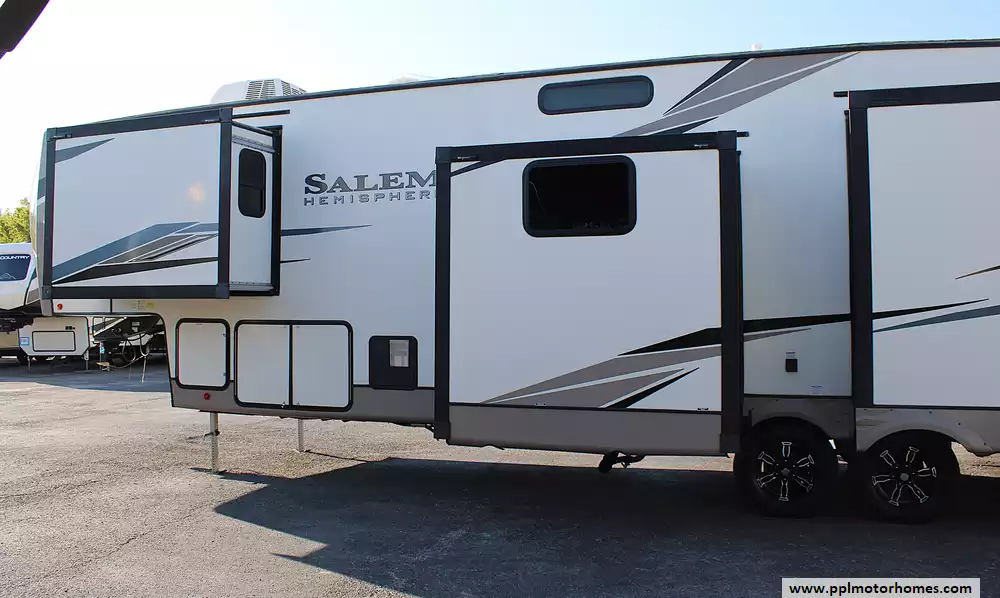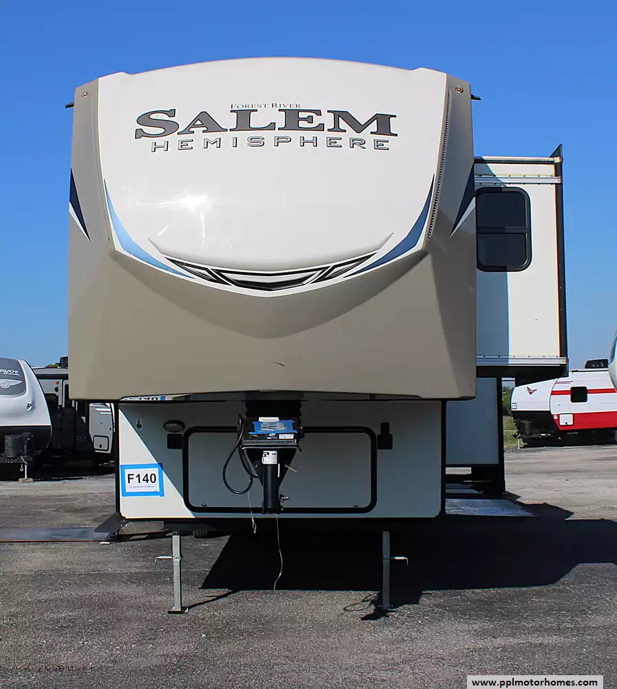 Please note, this unit does have blowout damage. Despite this, it remains a remarkable opportunity for anyone seeking a high-end fifth wheel at a more affordable value. With a little attention and care, this Salem Hemisphere 369BL can quickly be restored to its full glory-offering the same luxury, space, and craftsmanship that make it one of Forest River's most desirable models.