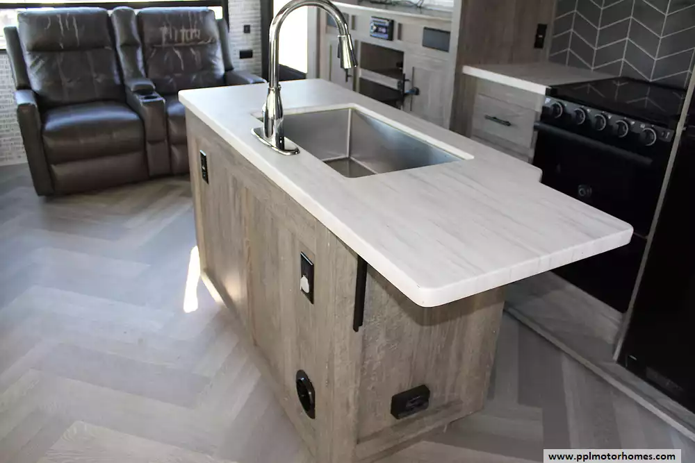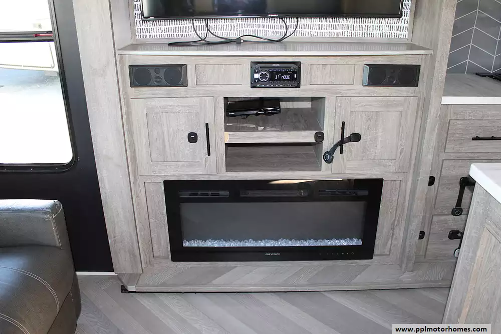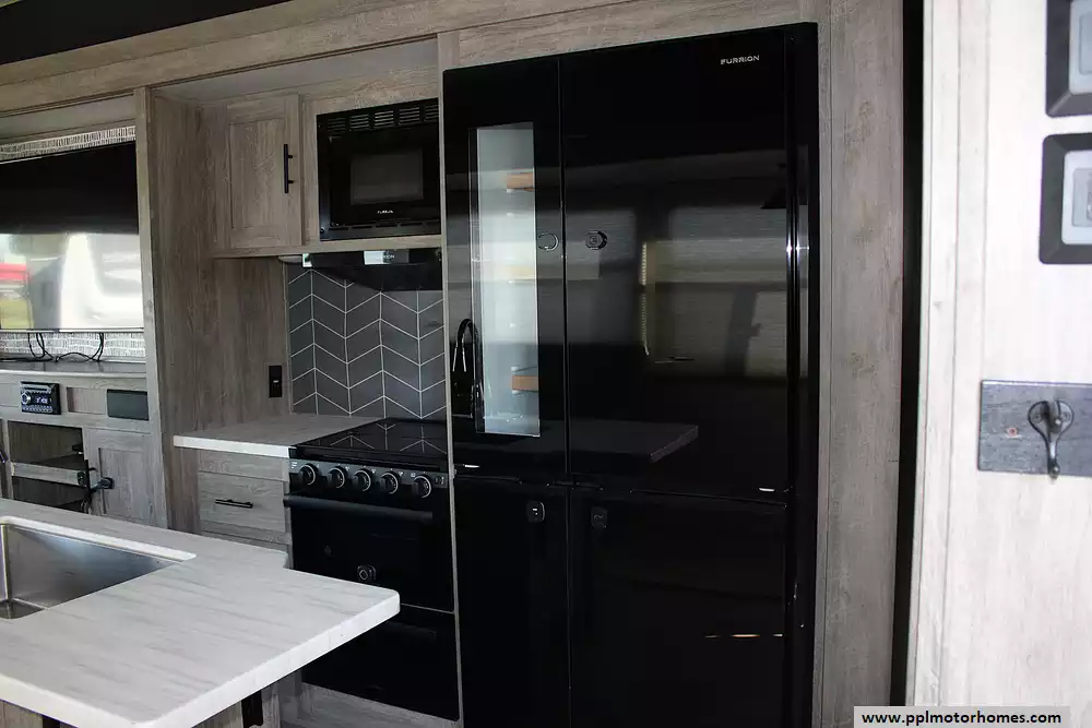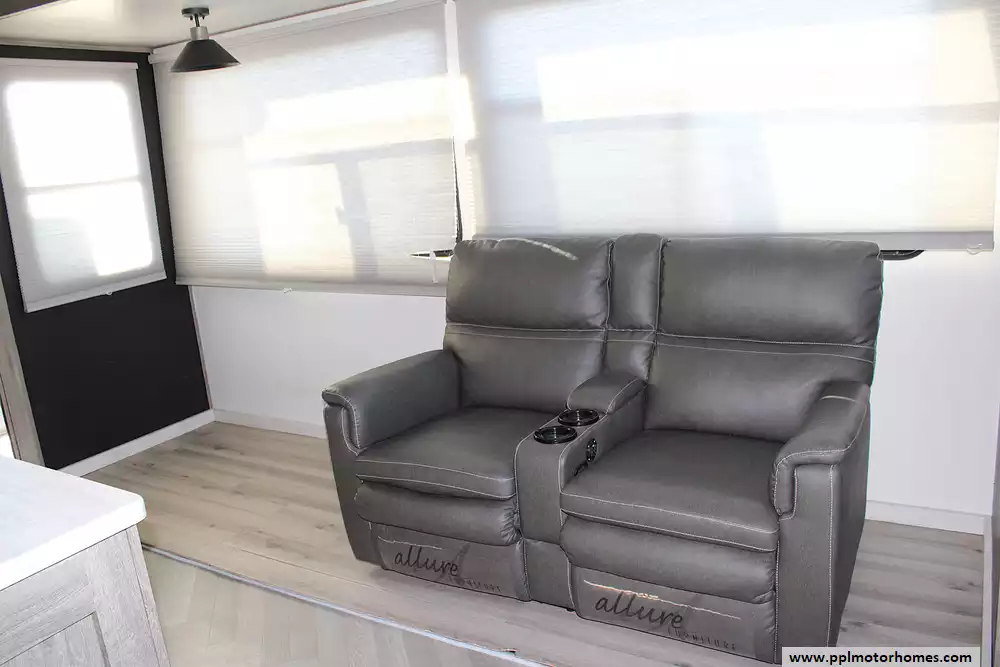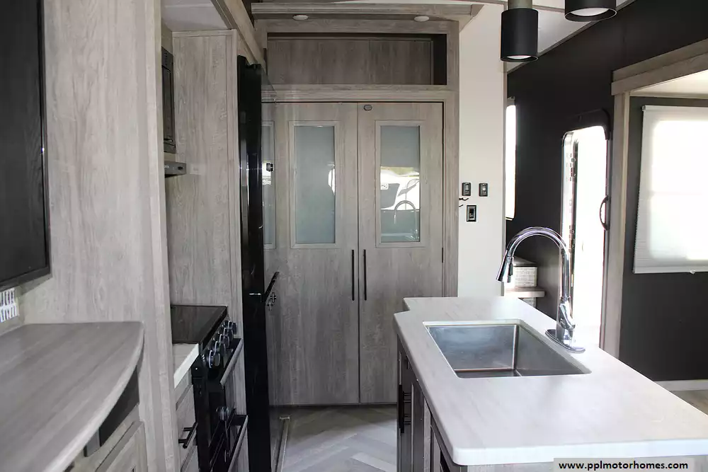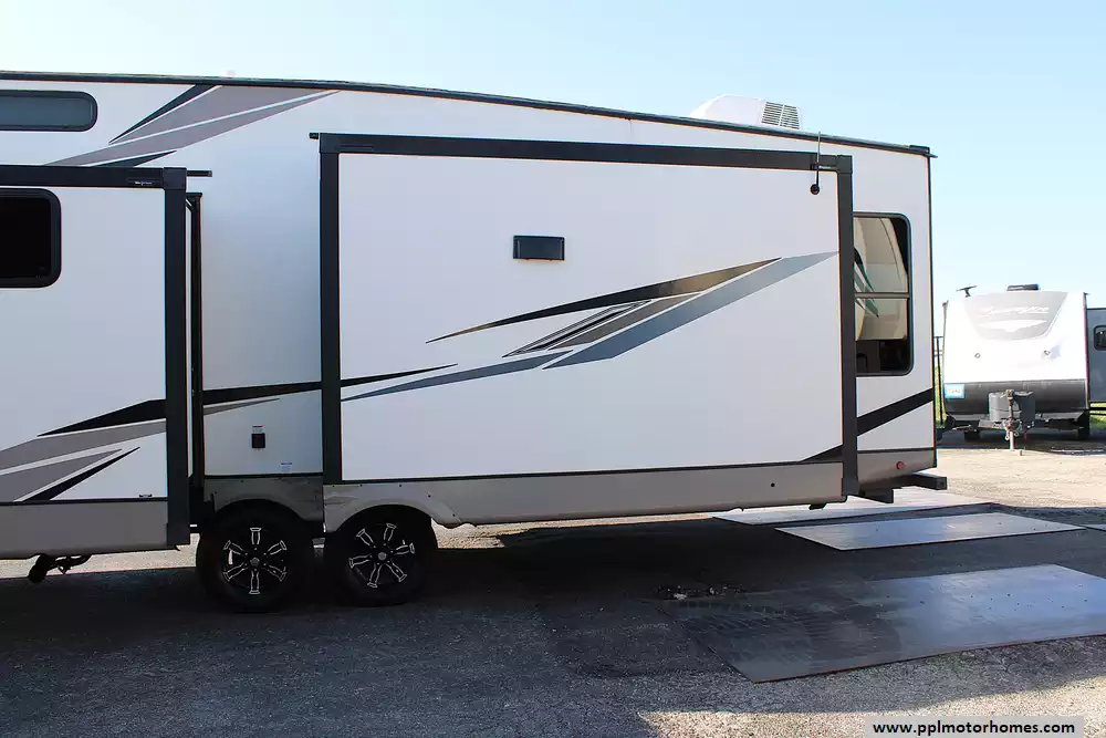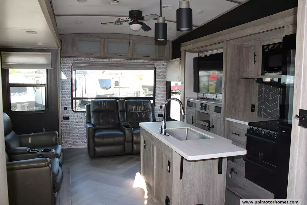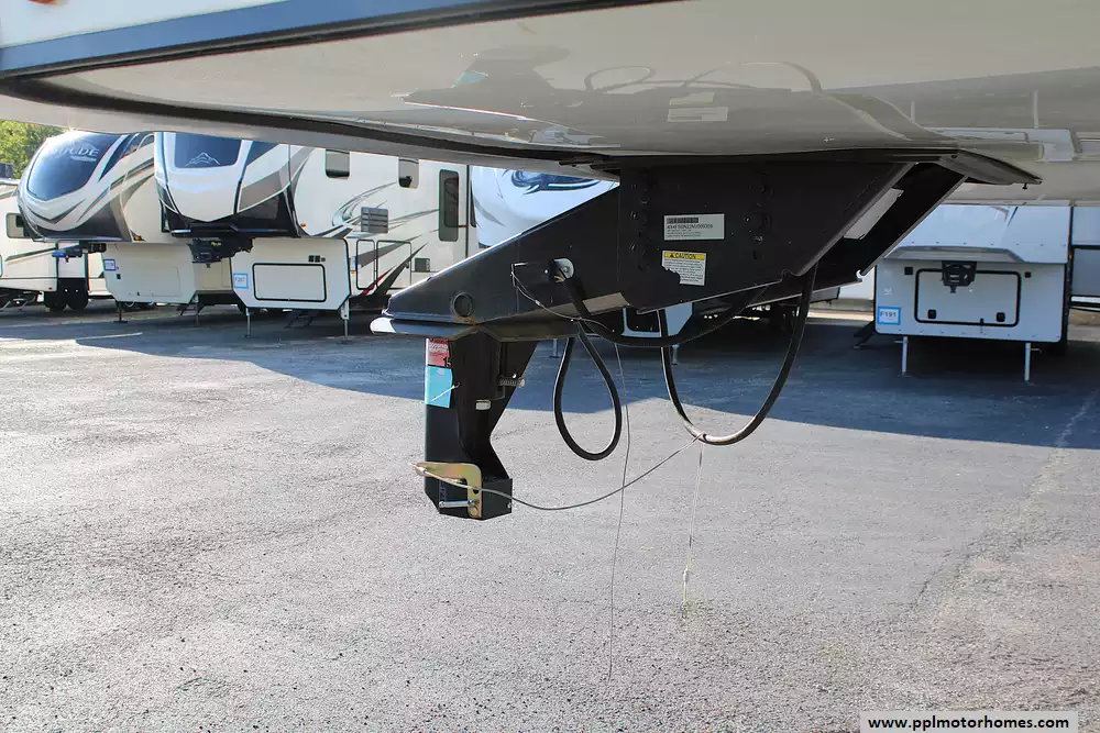 Towing this impressive fifth wheel is a breeze with a properly equipped three-quarter-ton or larger vehicle, ensuring stability and confidence as you cruise down the open highway. The aerodynamic front cap, balanced weight distribution, and durable construction make travel smooth and stress-free, while the spacious interior greets you with all the luxuries you'd expect from a high-end residential design. Whether you're chasing summer sunshine, exploring mountain views, or setting up camp by the lake, this fifth wheel provides both mobility and the comforts of home wherever you roam.