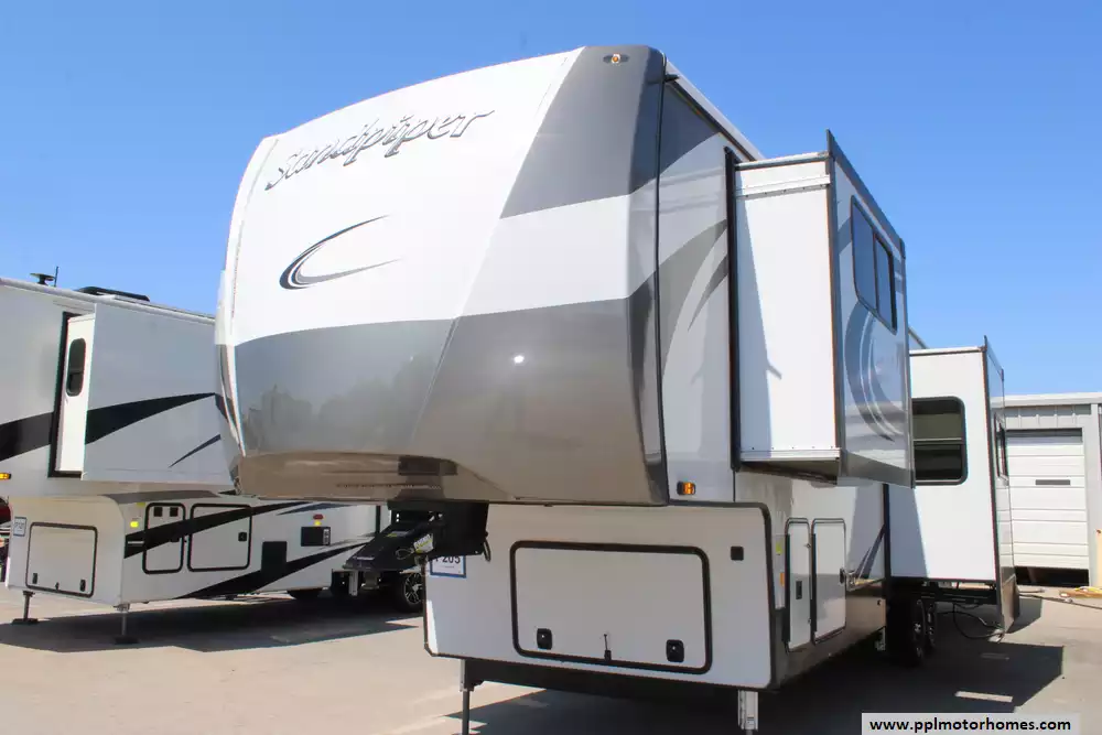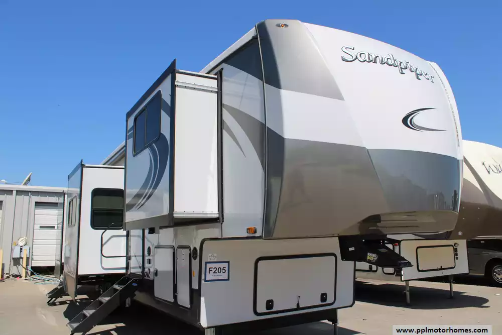 This Beautiful 2022 Sandpiper Luxury 38FKOK Is Constructed For The Full Time Living. It's Amenities Include...6 Point Hydraulic Landing Gear, 6 Slide-Outs, 2 Ducted Air Conditioners, 110v Residential Refrigerator, In-Fridge Ice Maker, Automatic Main Awning, Washer/Dryer, Solar Panel, Outside Speakers, TV, DVD Player, Outdoor Grill, Outdoor Kitchen (Additional Refrigerator Present), Outside Shower, Fireplace, Convection Microwave, 3 Burner Range, Oven And Much More! The Time Is Right, You've Made The Decision To Live Out Your Dreams! Ask About Financing Options!