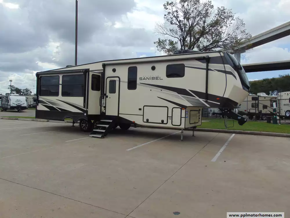 This 2022 Sanibel 3102RSWB is a luxurious fifth wheel designed for comfort,style, and functionality,making it an ideal choice for long-term travelers or those seeking high-end camping experiences.Features Include...Electric Landing Gear, 3 Slide-outs, 2 Ducted Air Conditioners, 4 Door 110v Refrigerator, In-Fridge Ice Maker, Automatic Main Awning And Window Awning,Back Up and Side View Camera,Auto Leveling,Furrion Sound Bar, Washer/Dryer Connections, Outside Entertainment System, TV, Outside Shower,Fireplace, Microwave,and 3 Burner Range.With its luxury features,spacious design,and attention to detail,this fifth wheel is perfect for RVers who want to travel in style and comfort.