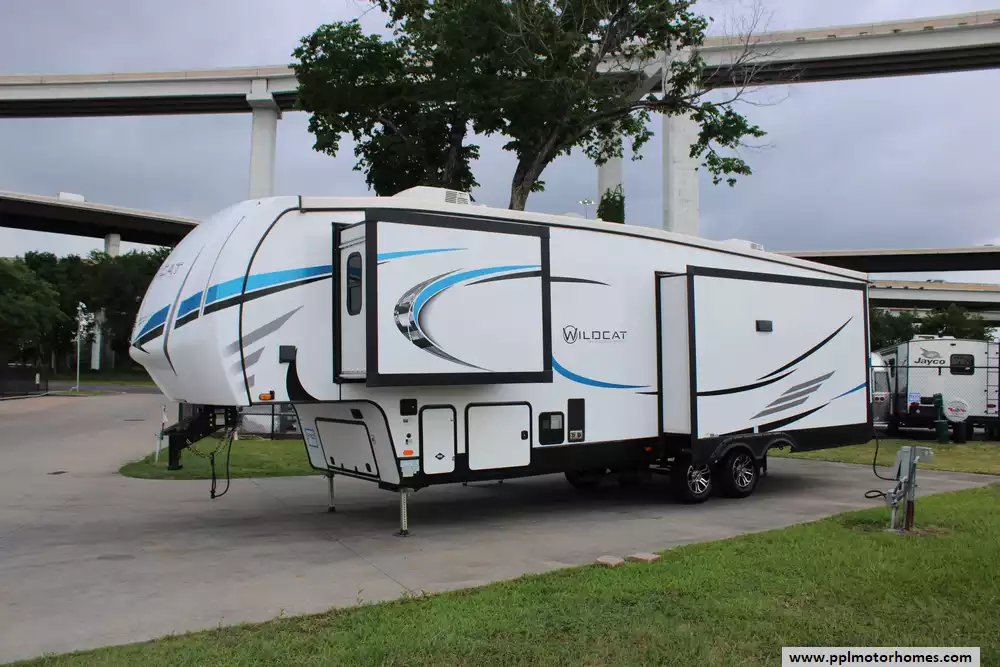 This 2022 Wildcat by Forest River 333RLBS is a spacious and well-appointed fifth-wheel RV designed for comfort and convenience during extended travels. Features Include...Hydraulic Landing Gear, 3 Slide-outs, 2 Ducted Air Conditioners, Double Door Gas/110v Norcold Refrigerator, Automatic Main Awning And Window Awning, Washer/Dryer, Outside Speakers, 2 TVs, Fireplace, Microwave, and 3 Burner Range. With its thoughtful layout and array of features, it caters to those seeking a home-like experience on the road.