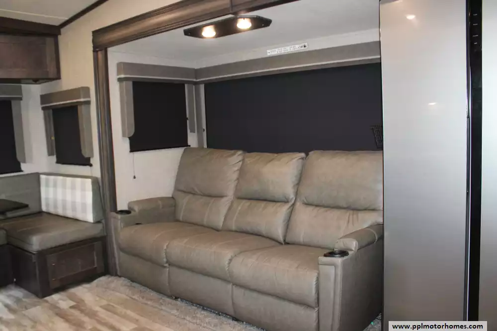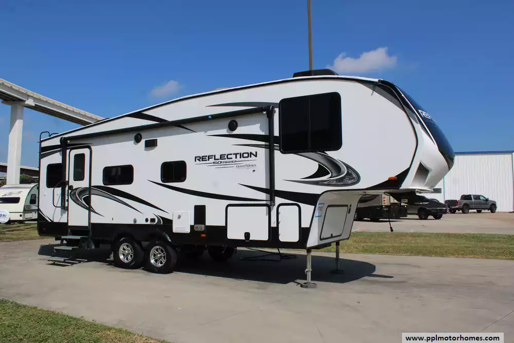 This 2022 Reflection 150 260RD is ideal for couples or small families who want a comfortable, fairly-compact fifth wheel with residential comforts. Amenities Include...1 Slide-out, 2 Ducted Air Conditioners, Double Door Residential Furrion Refrigerator, Automatic Main Awning And Slide Awning, 2 TVs, Outside Shower, Convection Microwave, 3 Burner Range, and Oven.