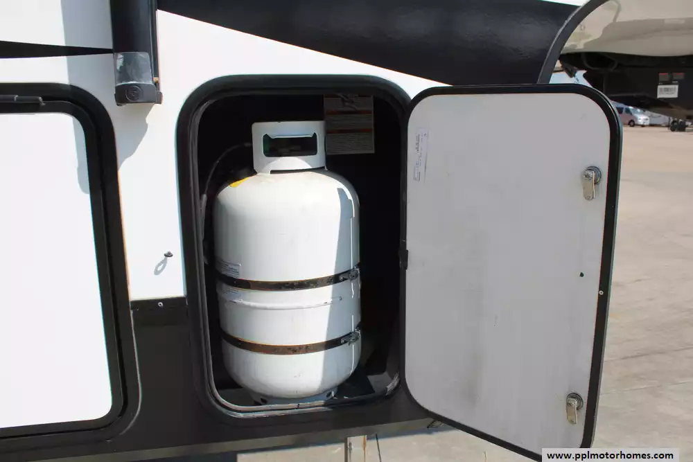 Specs: Length: 29.10 ft., Width: 8 ft., Height: 12 ft., Total Fresh Water Tank Capacity: 55 gal., Total Gray Water Tank Capacity: 71 gal., Total Black Water Tank Capacity: 39 gal., Number of Propane Tanks: 2, Total Propane Tank Capacity: 60 lbs.
