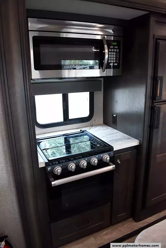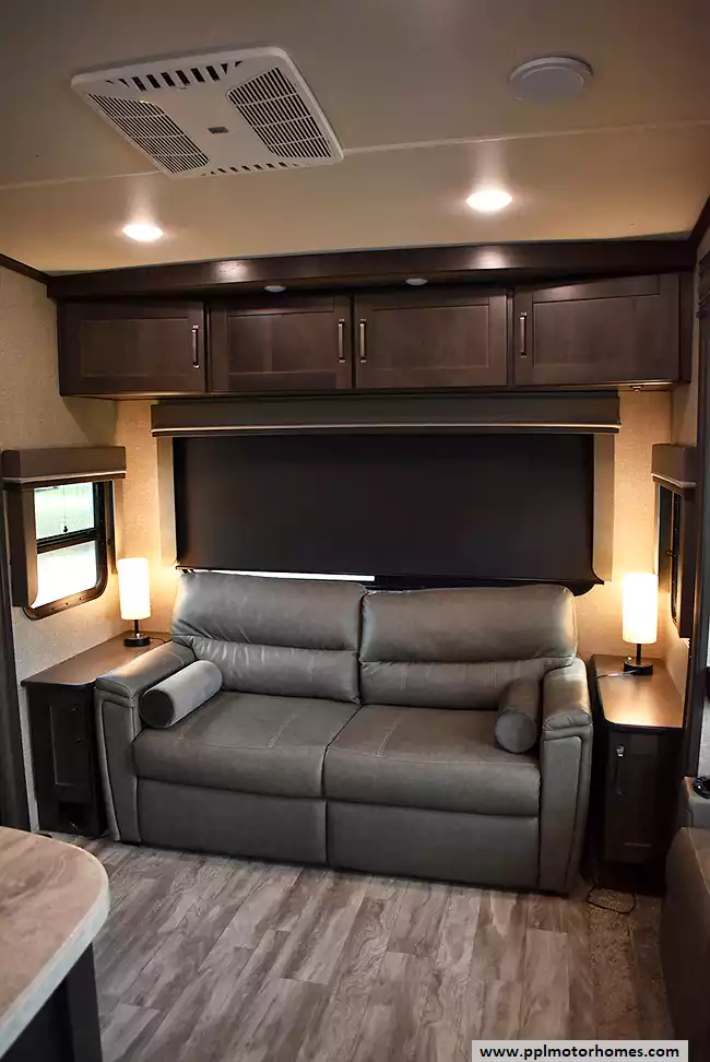 This 2022 Reflection 150 280RS has an Electric Landing Gear, 2 Slide-outs, 2 Ducted Air Conditioners, Double Door Gas/110v Dometic Refrigerator (Additional Refrigerator Present), Automatic Main Awning And Slide Awning, Heated Tanks, In-Motion Satellite System, Outside Speakers, 2 TVs, Fireplace, Microwave, 3 Burner Range, Oven