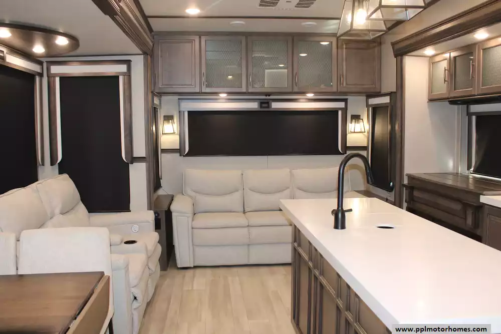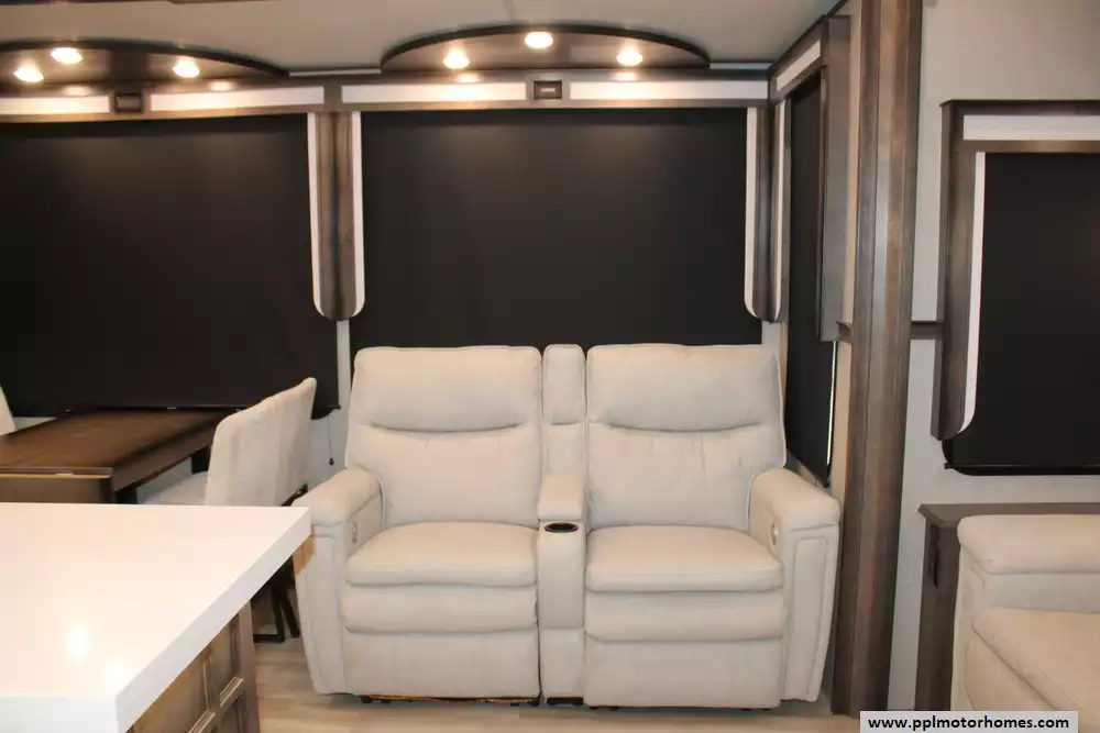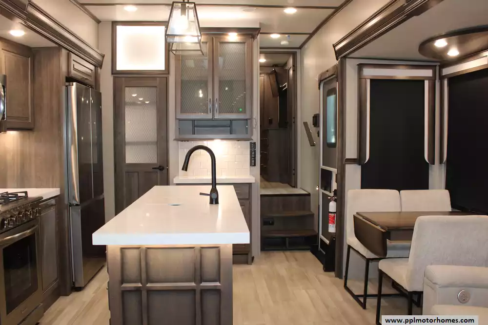 This 2022 Solitude 310GK is built for comfort, long weekends, or even more permanent camping setups. It offers a strong mix of residential-style interior features with functional RV systems. Amenities Include...Hydraulic Landing Gear, 3 Slide-outs, 3 Ducted Air Conditioners, 110v Residential Samsung Refrigerator, Automatic Main Awning And Window/Slide Awnings, Washer/Dryer Connections, Outside Entertainment System, 3 TVs, Outside Shower, Fireplace, Microwave, 4 Burner Range, and Oven.