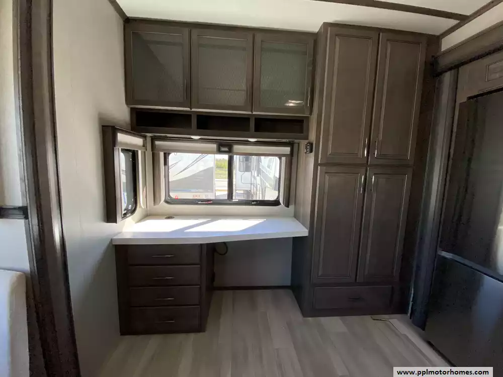 (Floor plan is NOT drawn to scale. Length of vehicle is approximate. Buyer is responsible for verifying actual length. PPL Motor Homes compiled this list of features, specifications, equipment and options as a guide. No representation or warranties, either express or implied, are made as to the accuracy of the information herein. Please verify for yourself all items listed before purchase.)