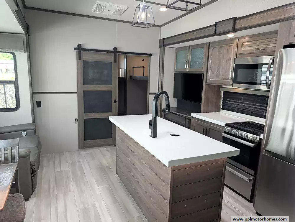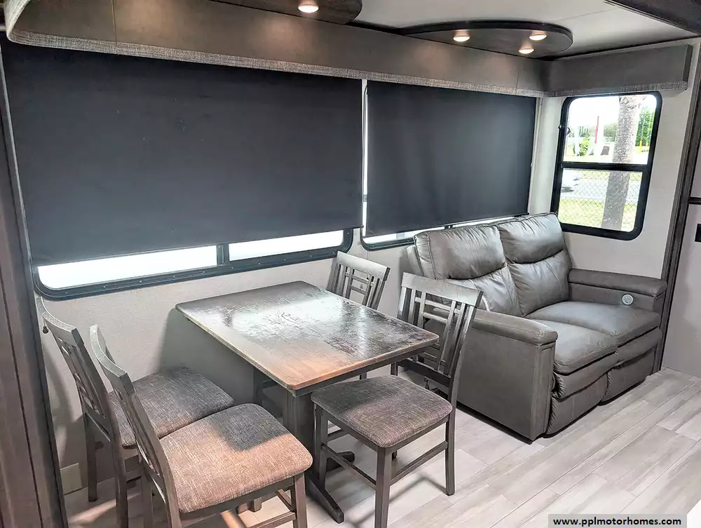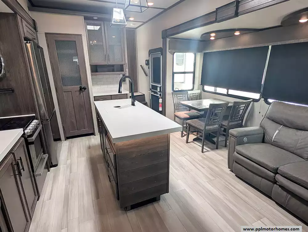 Experience the pinnacle of luxury and family-friendly travel with the 2022 Grand Design Solitude 3740BH. Renowned for its industry-leading wide-body construction and extended-stay durability, this 40-foot fifth wheel features four spacious slide-outs that create a truly residential atmosphere. Built with high-quality fiberglass sidewalls and a robust rubber roof, this model is famous for its superior insulation and four-season capabilities, including heated tanks and three ducted air conditioners to keep you comfortable in any climate. The private bunkhouse suite and sophisticated interior design make it one of the most sought-after layouts for those who require the perfect balance of privacy and open-concept living.