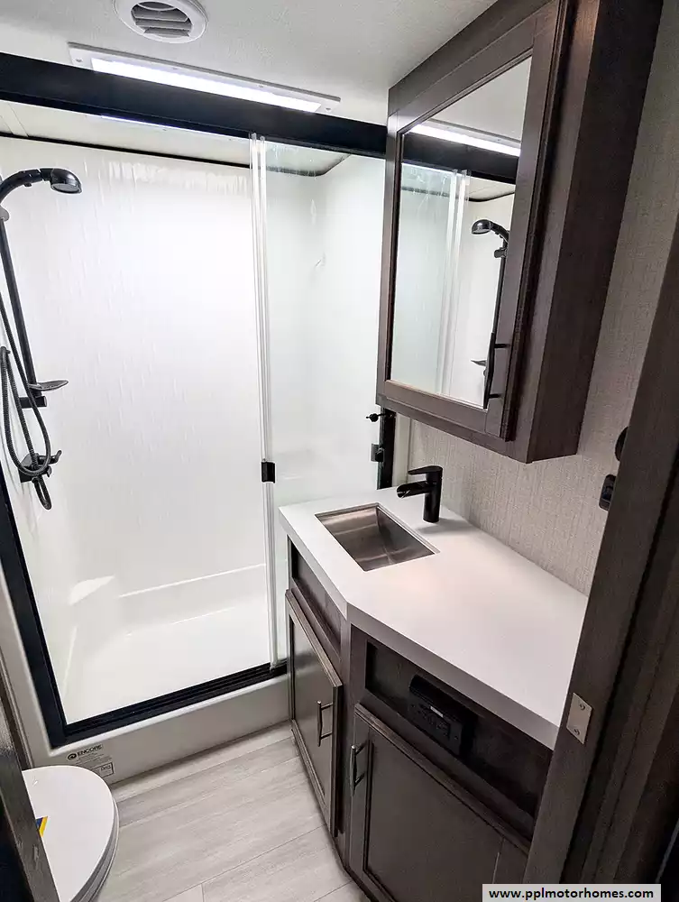 (Floor plan is NOT drawn to scale. Length of vehicle is approximate. Buyer is responsible for verifying actual length. PPL Motor Homes compiled this list of features, specifications, equipment and options as a guide. No representation or warranties, either express or implied, are made as to the accuracy of the information herein. Please verify for yourself all items listed before purchase.)