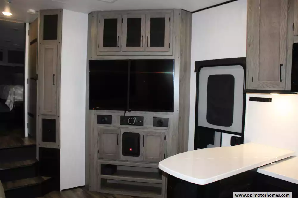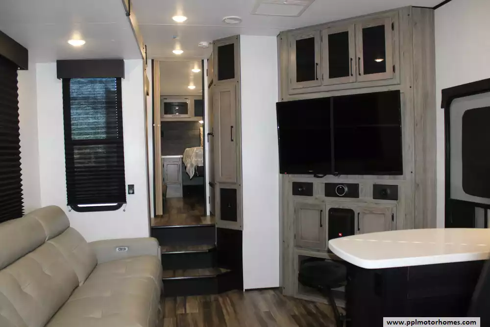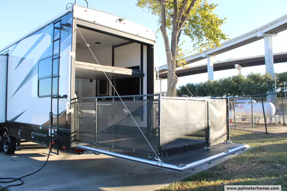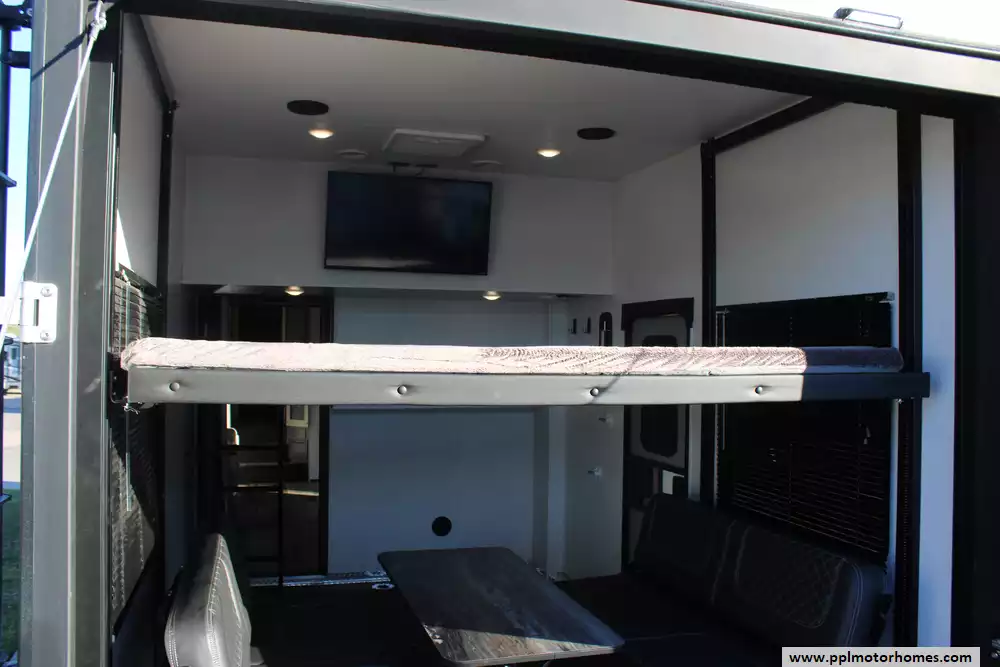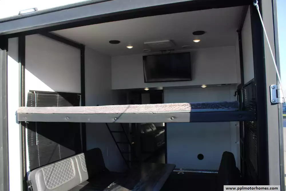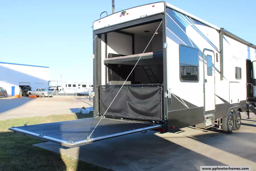 This 2022 Gravity 3640 is a high capability toy hauler that blends adventure ready features with comfortable living space. Ready for the fun, adventure lifestyle. Amenities Include...2 Slide-outs, 3 Ducted Air Conditioners, Refrigerator, Automatic Main Awning, Solar Panel, 3 TVs, Outdoor Kitchen, Convection Microwave, and 3 Burner Range.