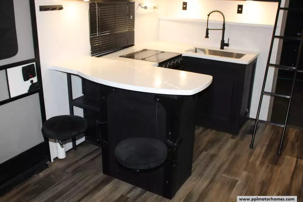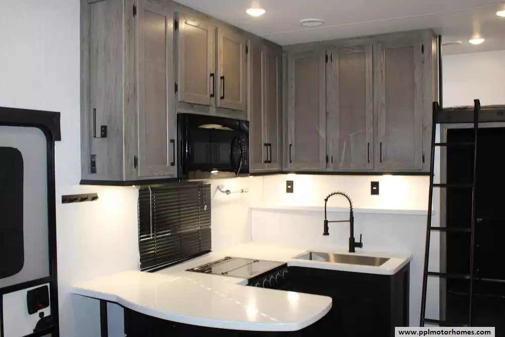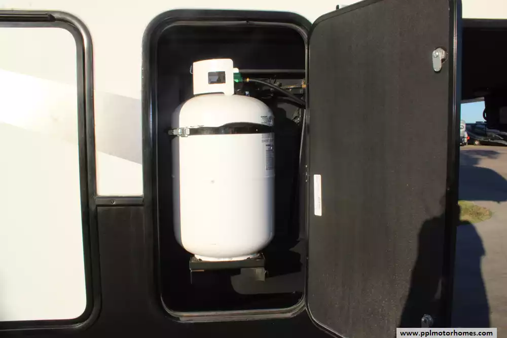 Specs: Length: 40.10 ft.,Width: 8.5 ft., Height: 13.3 ft., Interior Height: 6.33 ft, Payload Capacity: 4,254 lbs., Total Fresh Water Tank Capacity: 100 gal., Total Gray Water Tank Capacity: 85 gal., Total Black Water Tank Capacity: 45 gal., Total Number of Propane Tanks: 2, Total Propane Tank Capacity: 60 lbs.