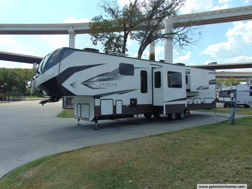 This 2022 Alpine 3790FK is a luxurious fifth-wheel RV designed for comfort,style, and high-end living on the road.Features Include...Hydraulic Landing Gear, 5 Slide-outs, 2 Ducted Air Conditioners, 110v Residential Samsung Refrigerator, Stand-Alone Ice Maker, Automatic Main Awning, Washer/Dryer, Solar Panel, Outside Entertainment System, TV, Outside Shower, Central Vacuum, Convection Microwave, 3 Burner Range,and Oven.It offers a high-end, residential experience on the road with its distinctive front kitchen layout, premium finishes, and spacious design.