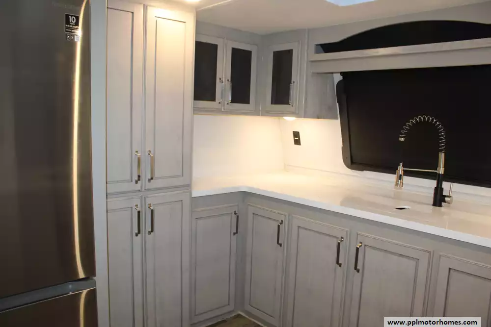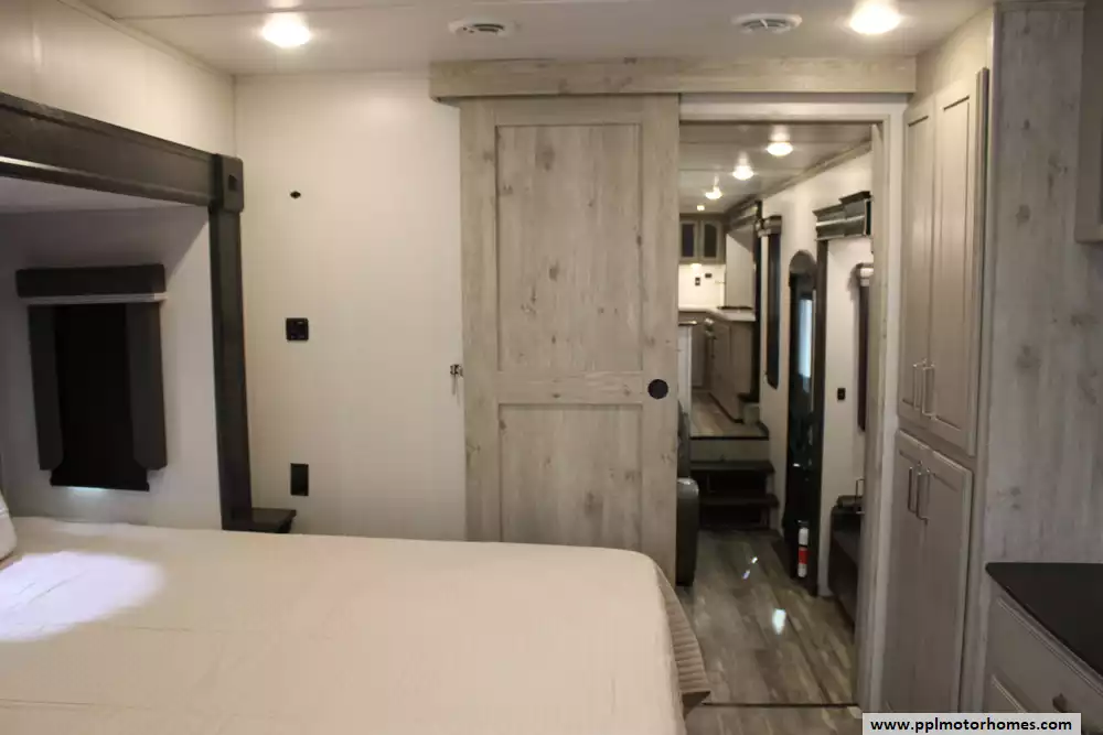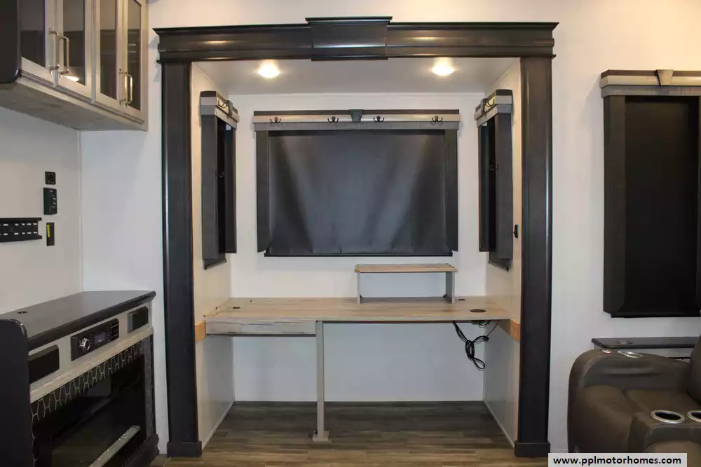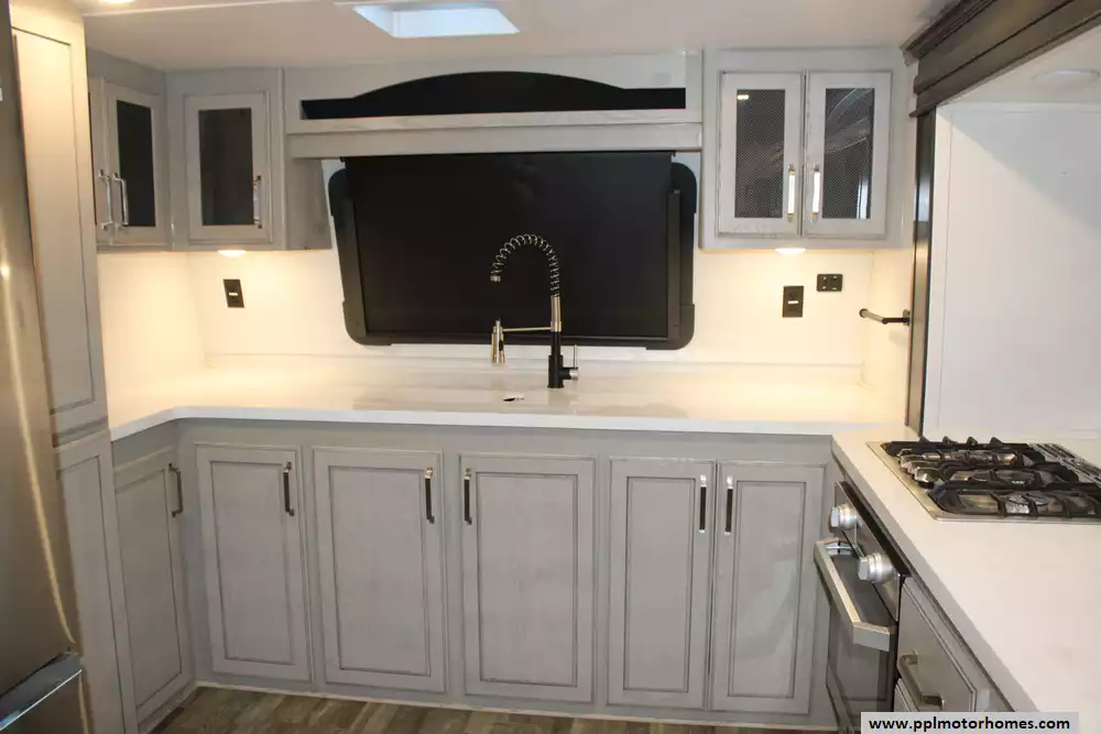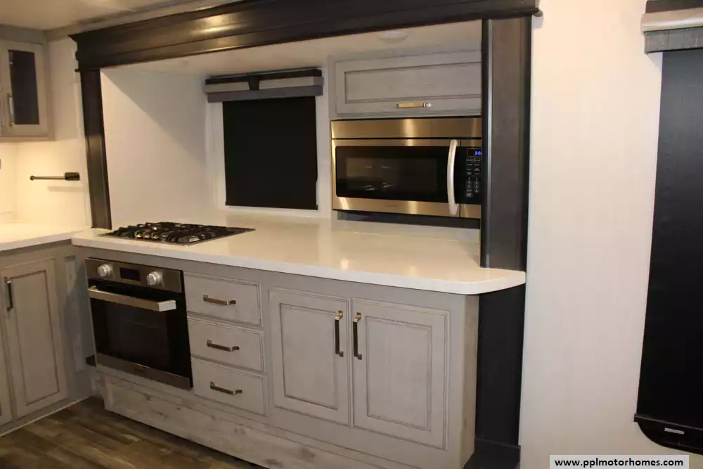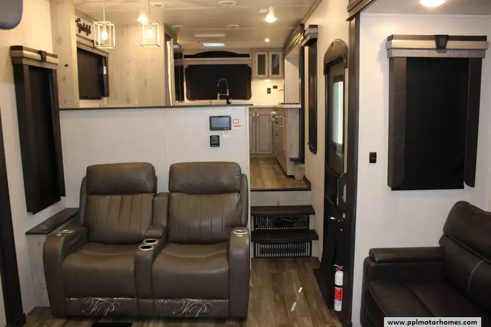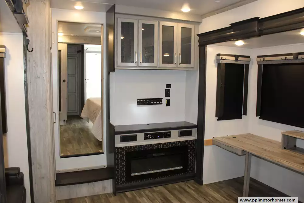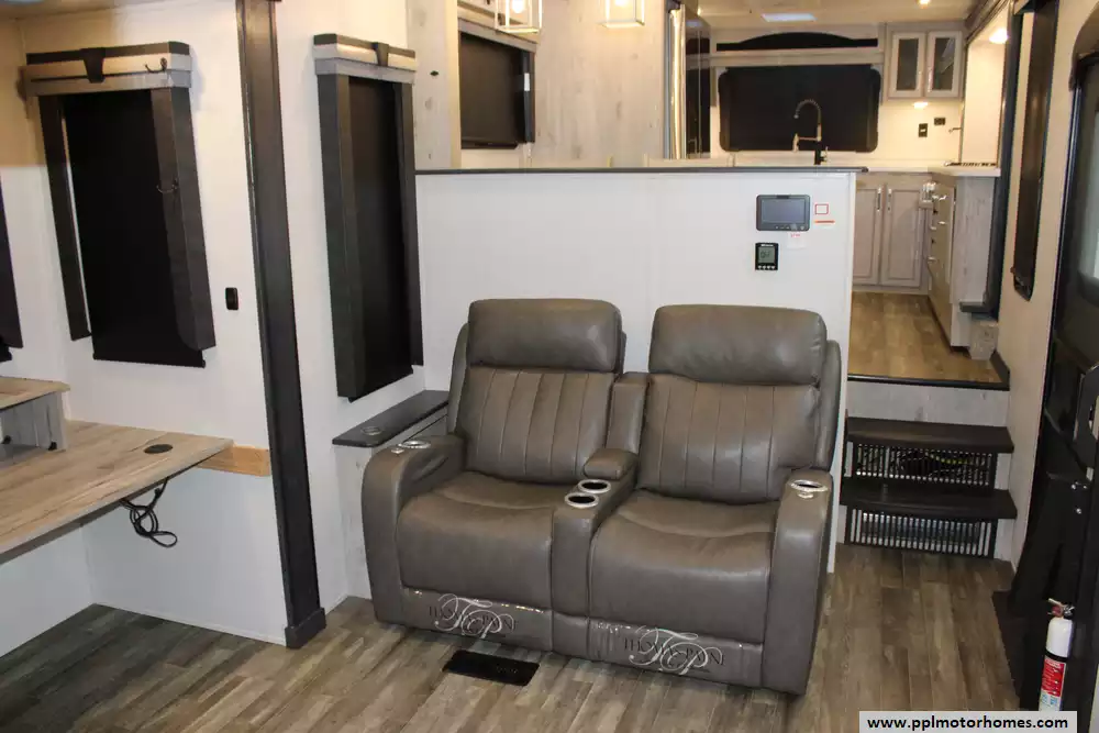 This 2022 Alpine 3790FK has a very home-like feel thanks to wide body, tall slides, high ceilings, large windows. Feels less like camping and more like a house on wheels. Features Include...Hydraulic Landing Gear, 4 Slide-outs, 2 Ducted Air Conditioners, 110v Residential Samsung Refrigerator, In-Fridge Ice Maker, Automatic Main Awning, Washer/Dryer, Outside Speakers, 2 TVs, Outside Shower, Fireplace, Central Vacuum, Microwave, 3 Burner Range, and Oven.