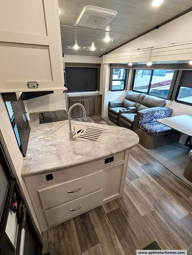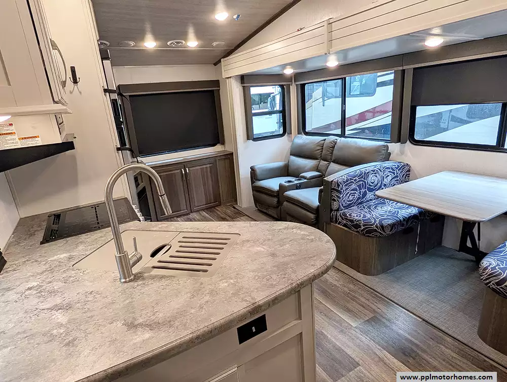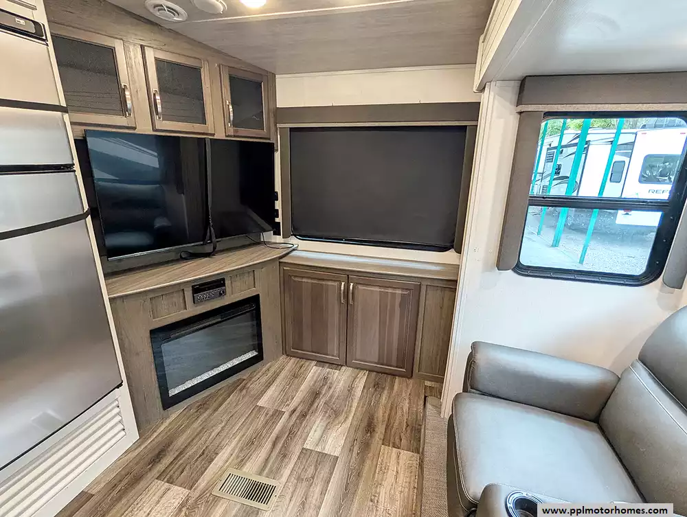 The interior is designed to feel like a true home on wheels, showcasing a spacious rear-living layout that is perfect for both relaxing and entertaining. You will appreciate the residential-style finishes and the abundance of natural light provided by the large windows throughout the living area. The well-equipped kitchen features ample prep space and a dependable refrigerator to keep your supplies fresh for every destination. With its smart storage solutions and high-end amenities, this 2022 Cougar 25RES delivers a professional-grade camping experience that doesn't sacrifice comfort for convenience.