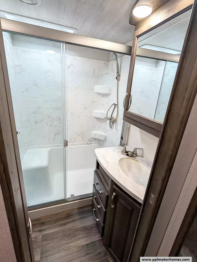 (Floor plan is NOT drawn to scale. Length of vehicle is approximate. Buyer is responsible for verifying actual length. PPL Motor Homes compiled this list of features, specifications, equipment and options as a guide. No representation or warranties, either express or implied, are made as to the accuracy of the information herein. Please verify for yourself all items listed before purchase.)