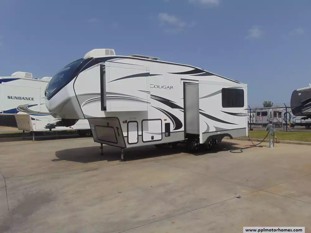 This 2022 Cougar Half Ton 24RDS is a travel trailer designed to offer comfort and convenience for both short trips and extended stays.It's known for their lightweight construction and towability,making them accessible to a wider range of vehicles.Amenities Include...2 Slide-outs, 2 Ducted Air Conditioners, Double Door Gas/12v Norcold Refrigerator, Automatic Main Awning, Solar Panel,Outside Speakers,TV,Back Up Camera and Monitor,New Batteries,Tire Monitoring System,New Tires,DVD Player,Outside Shower,Fireplace,Microwave, 3 Burner Range,and Oven.This is a well-rounded travel trailer that combines lightweight towability with luxury features,making it a popular choice for families and couples looking to explore the great outdoors.